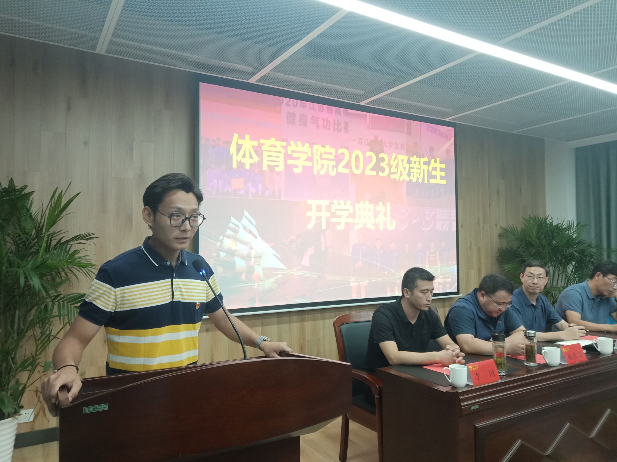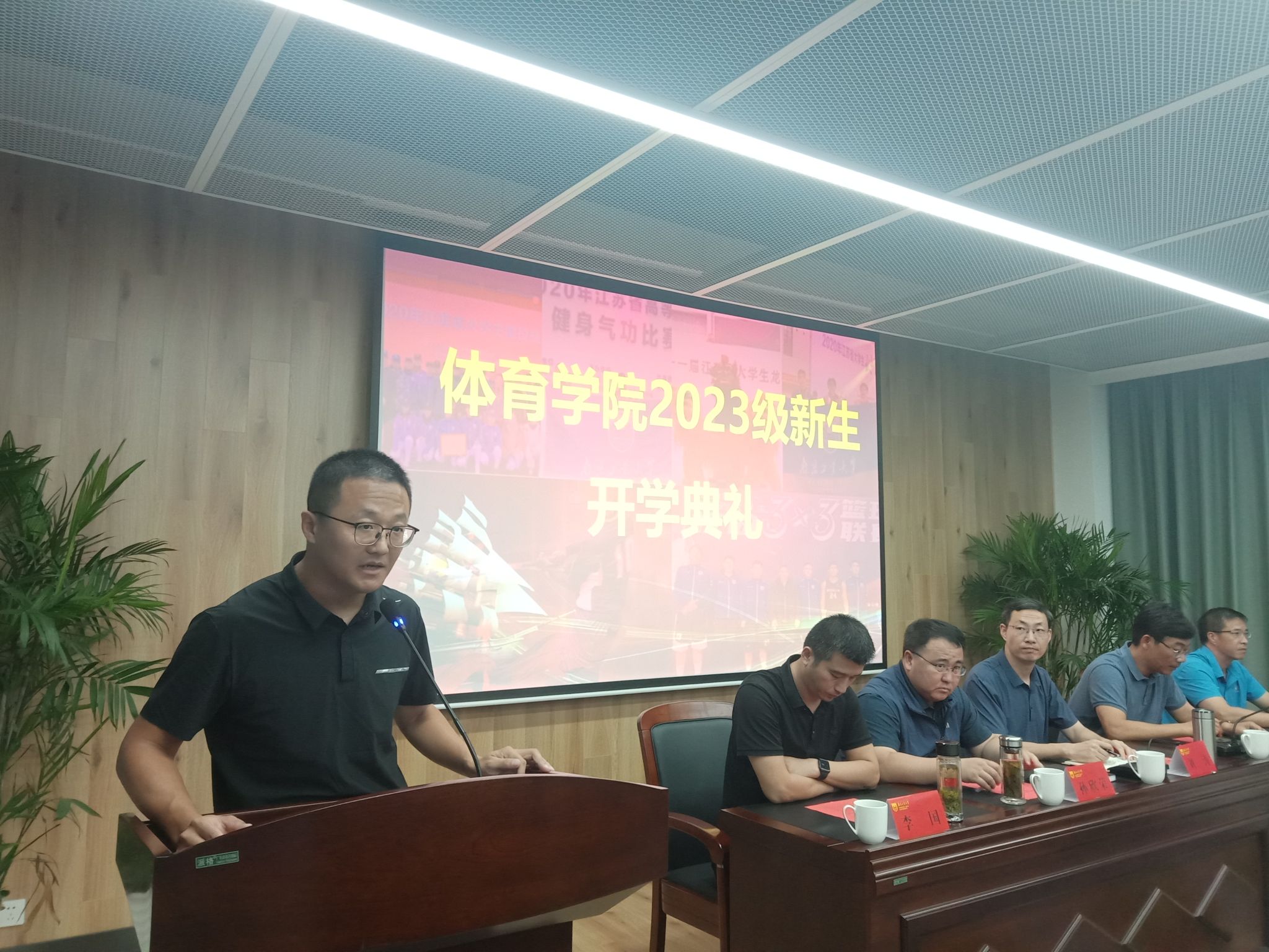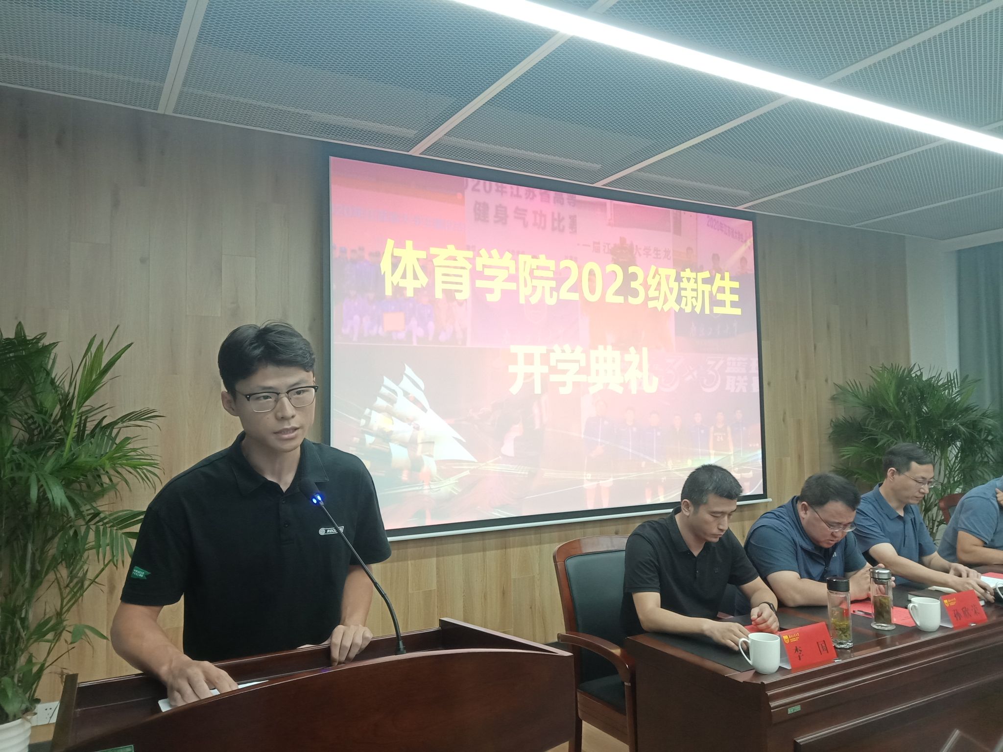 党总支书记刘涛以“由体到育,知行合一”为题发表讲话。他向同学们提出三点建议。一是树立标杆,下出先手棋。树立标杆就是树立远大的目标。只有树立远大的目标,我们才能围绕目标做好规划,不断努力,下出职业生涯的先手棋。二是突破限制,跳出舒适区。希望同学们不但能吃“运动场”上的苦,还要能吃“图书馆”里的苦,要细致认真严谨,要有点完美主义,修炼“能文能武”的核心竞争能力。三是弘扬精神,激发源动力。作为科班的体育专业人,弘扬体育精神,繁荣体育文化是义不容辞的责任。最后,他向同学们表达了殷切的希望,希望大家以“强国有我”为担当,以弘扬体育精神为责任,以实现自身的全面发展、体育育人的独特功能为目标,为体育事业高质量发展而努力奋斗。