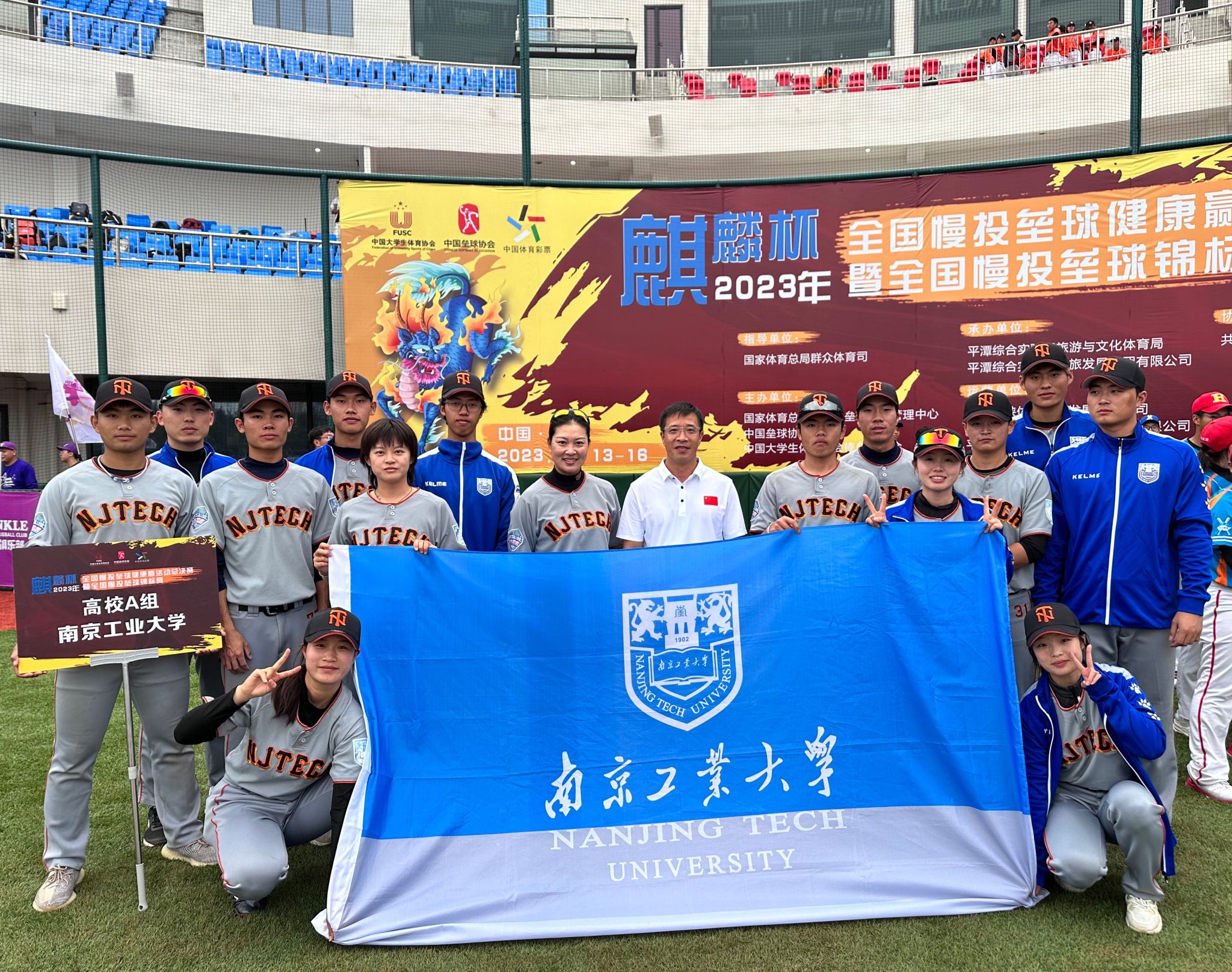 太阳成集团tyc234cc慢投垒球队在教练员蔡协清的带领下,历经两天的鏖战,最后以单循环小组赛积分排名第一,夺得2023年“麒麟杯”全国慢投垒球锦标赛高校A组冠军。
