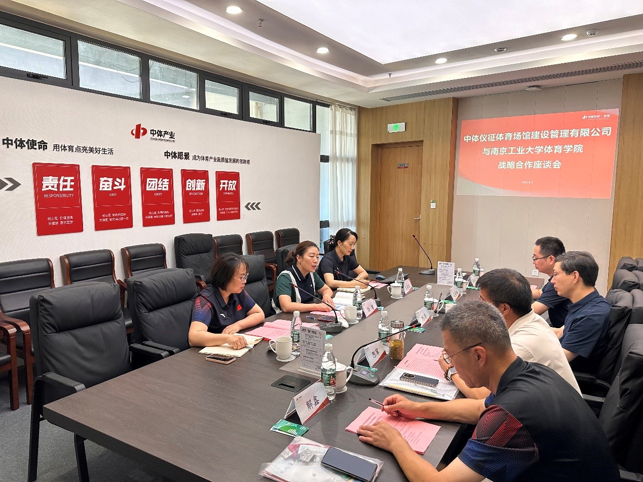 陈军副经理从公司办学历史、人才培养、科学研究、社会服务、公司特色等方面介绍了公司的基本情况,刘涛书记从省队校办、推动体工融合、就业创业等方面进行了介绍,陈军副经理和刘涛书记均表示南工大太阳成集团tyc234cc与中体仪征场馆公司有很多合作点,希望双方深化合作,发挥各自优势,携手打造育人平台、推进人才培养全链条合作,实现双向奔赴。