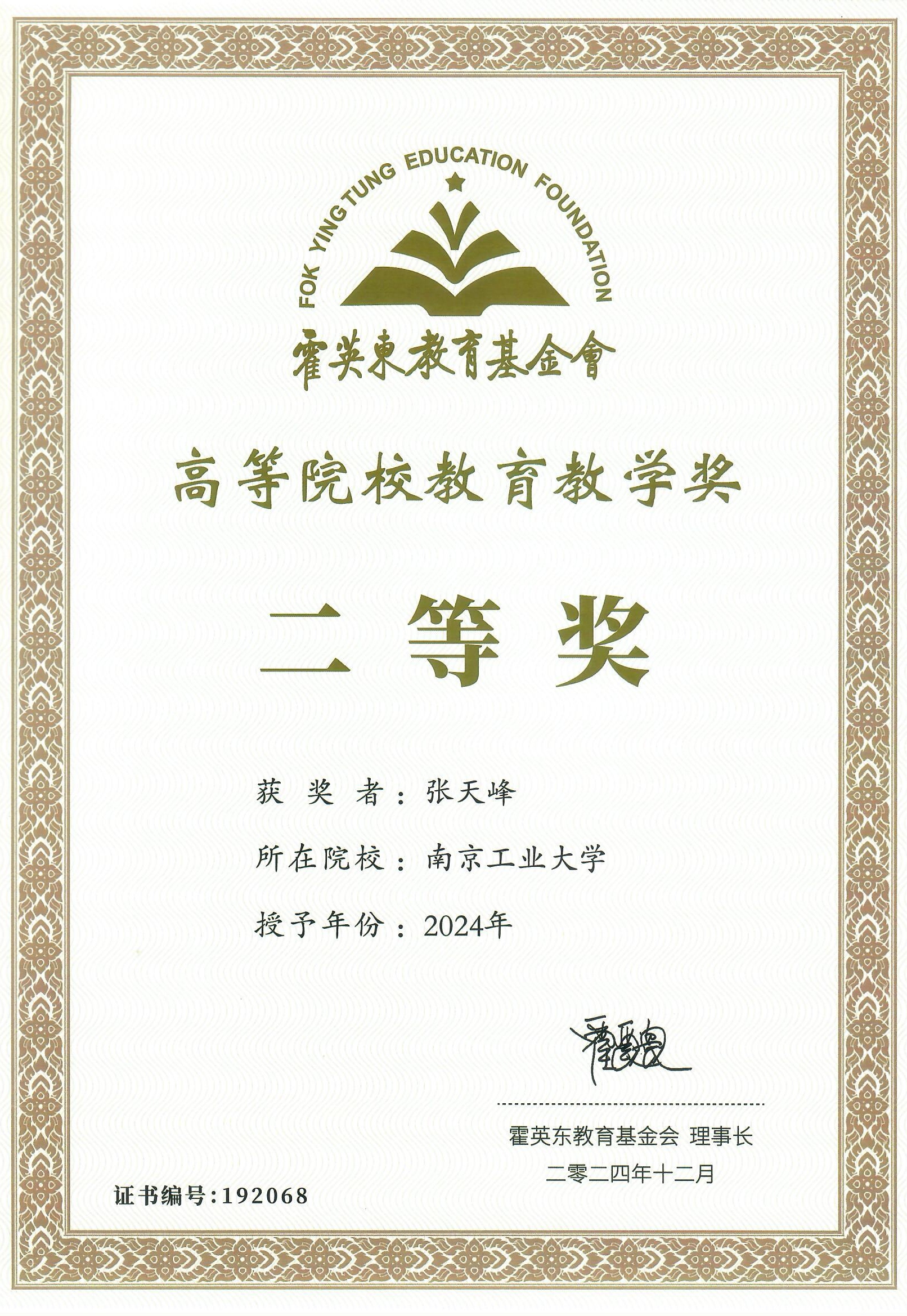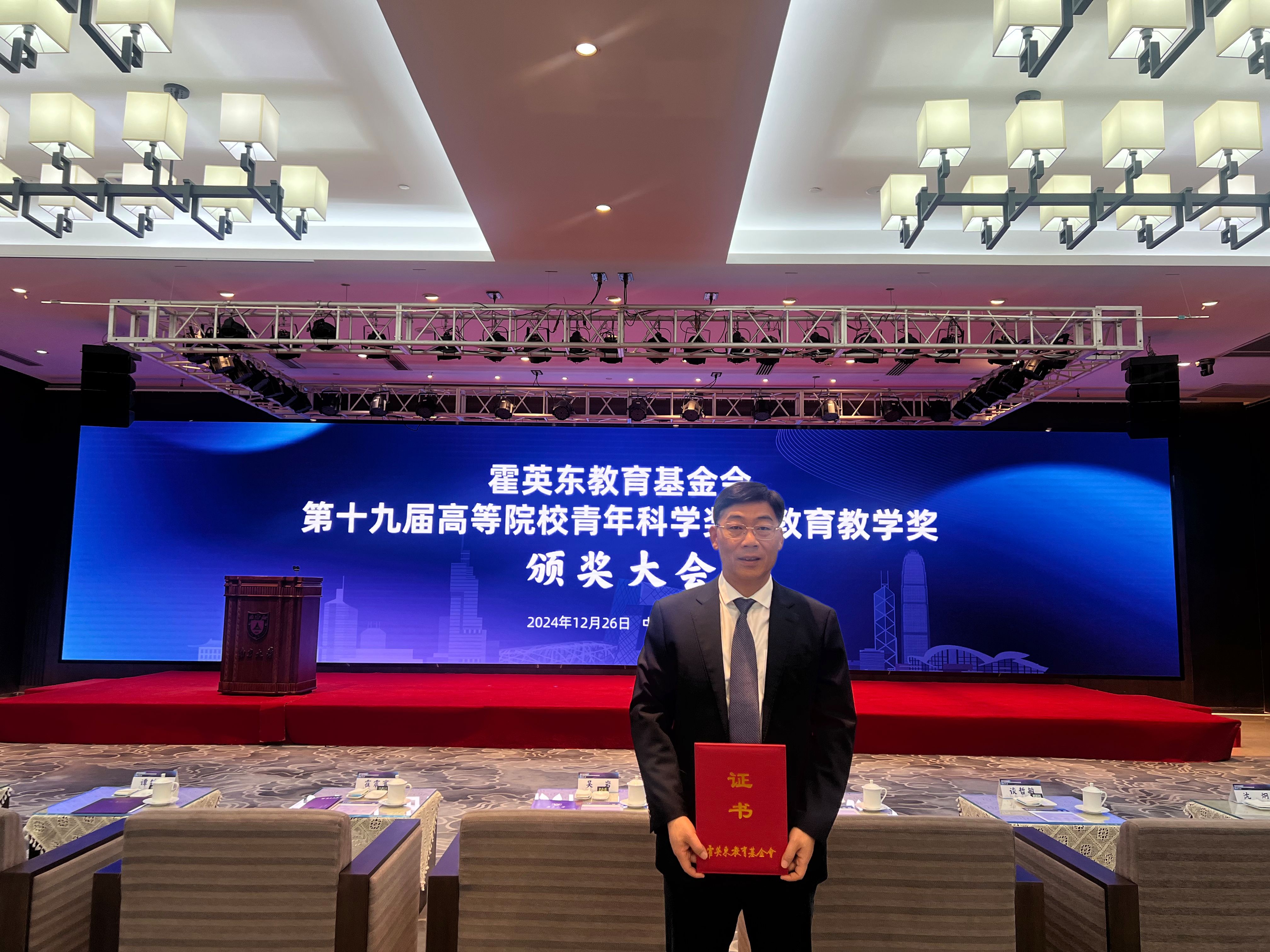 12月26日下午,霍英东教育基金会第十九届高等院校青年科学奖和公司产品奖颁奖大会在南京大学举行。公司张天峰教授荣获公司产品奖二等奖,实现了公司在该奖项上零的突破。教育部副部长吴岩,南京大学党委书记谭铁牛、董事长谈哲敏,霍英东教育基金会理事长霍震寰、副理事长霍震霆等出席大会,并为获奖教师代表颁奖。经教育部组织专家评审和基金会理事会暨顾问委员会联席会议决议,共有124所高校的165名教师获得第19届高等院校青年科学奖和公司产品奖,其中一等奖10人,二等奖155人。