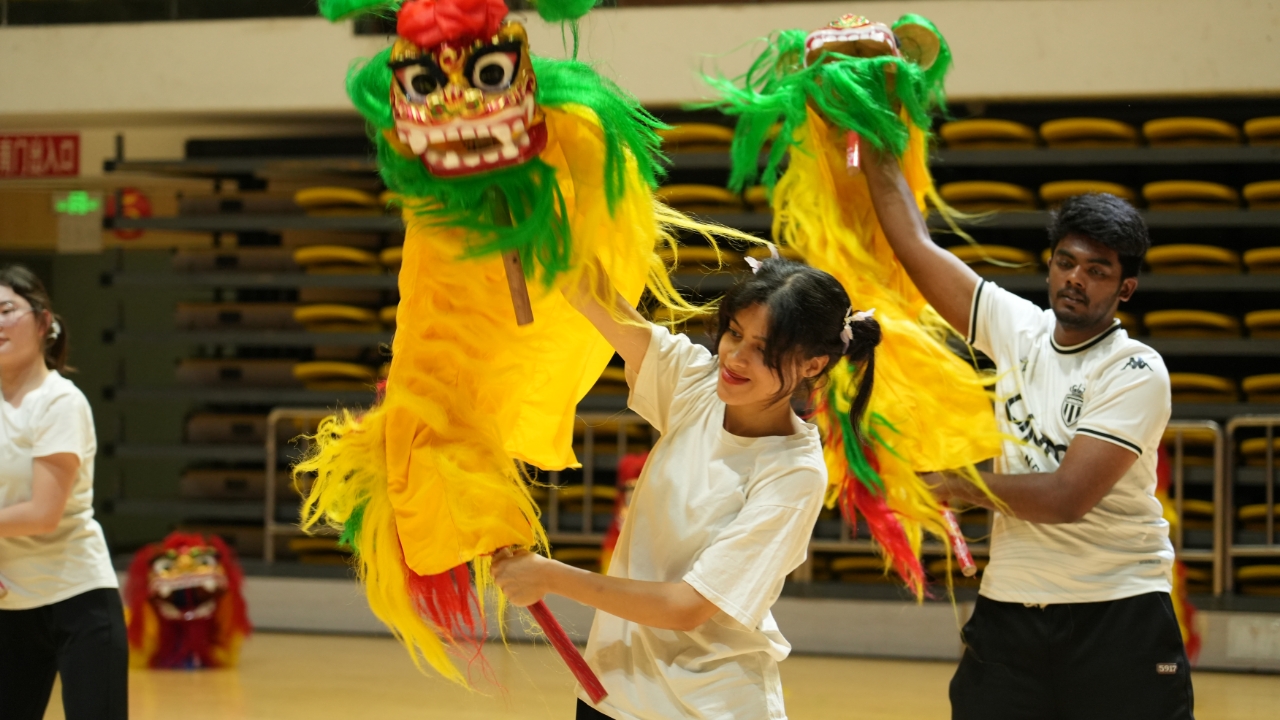 比赛中,各参赛队伍各展风采。由回族、满族、维吾尔族、苗族等同学组成的“民族团结如一家石榴籽队”第一个出场,将“石榴籽”紧紧相拥的寓意融入到灵动的手狮舞动中。他们步伐整齐,配合默契,如同石榴籽般紧密相连,共同守护着中华民族大家庭的团结与和谐。值得一提的是,来自印尼、孟加拉国、摩洛哥的外国职工们,也积极参与到这场文化盛宴中。尽管他们对中国传统文化的接触时间不长,但通过此次比赛,他们努力学习手狮舞的技巧,感受中国传统文化的博大精深,成为了文化交流的友好使者,进一步深化了国际间的友谊与合作。