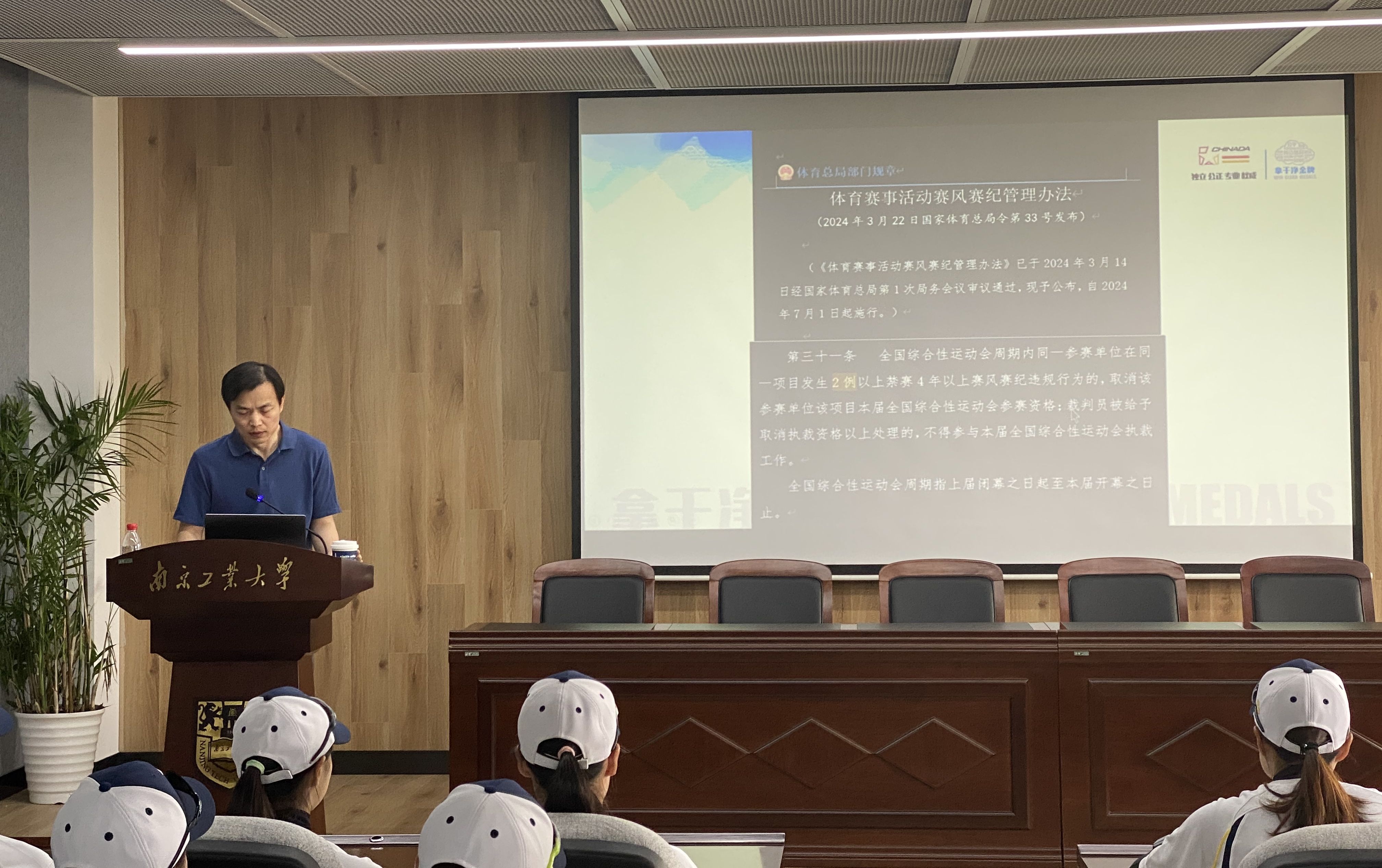 为深入贯彻落实习近平总书记关于反兴奋剂工作的重要指示精神,强化运动员“拿干净金牌”的责任意识,5月27日上午,南工大江苏女垒在太阳成集团tyc234cc报告厅举办反兴奋剂专题培训讲座。本次讲座由江苏省体育科学研究所资深科研专家陈俊飞博士担任主讲,江苏女垒全体运动员、教练员及后勤保障团队参与学习。