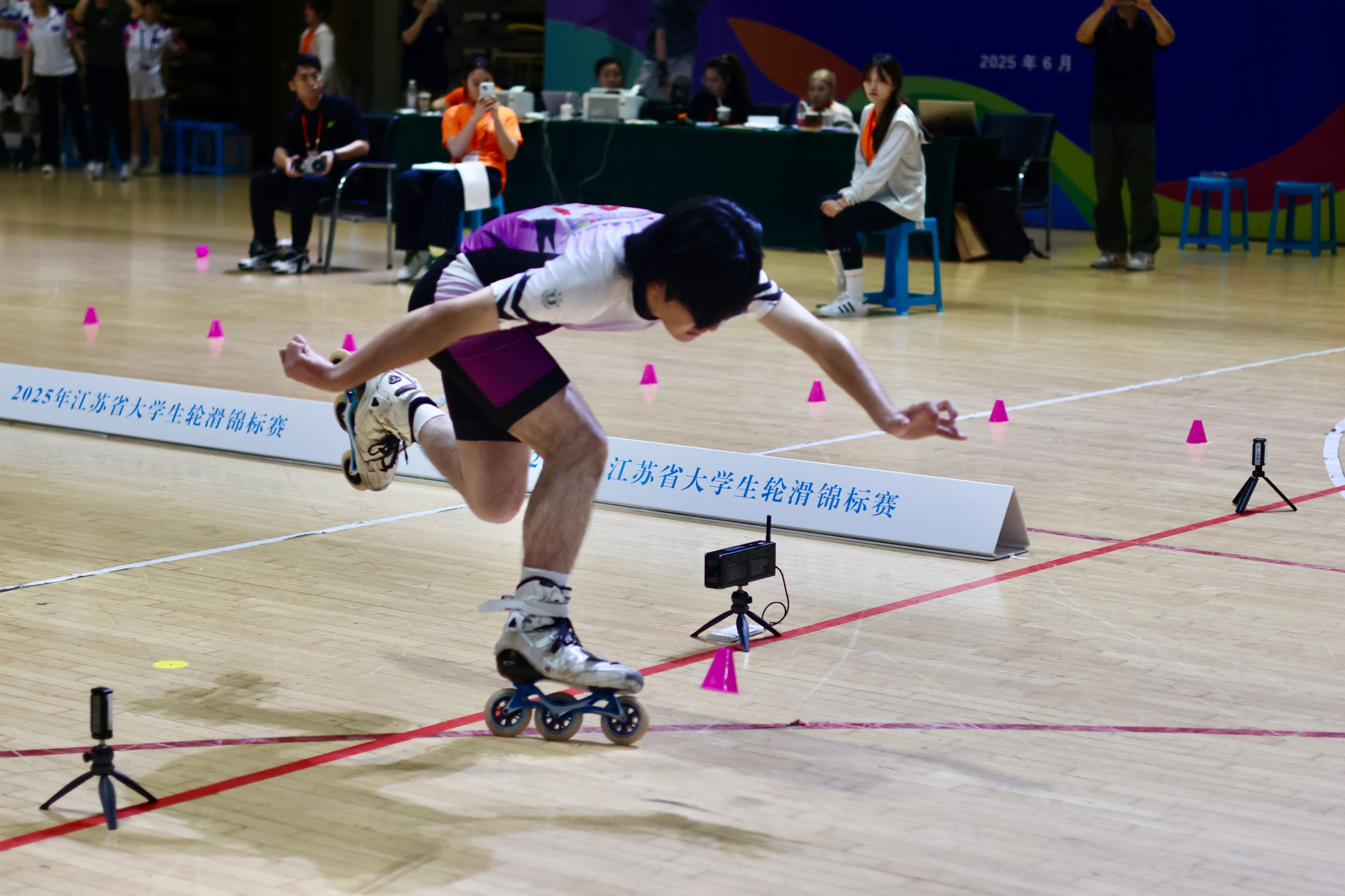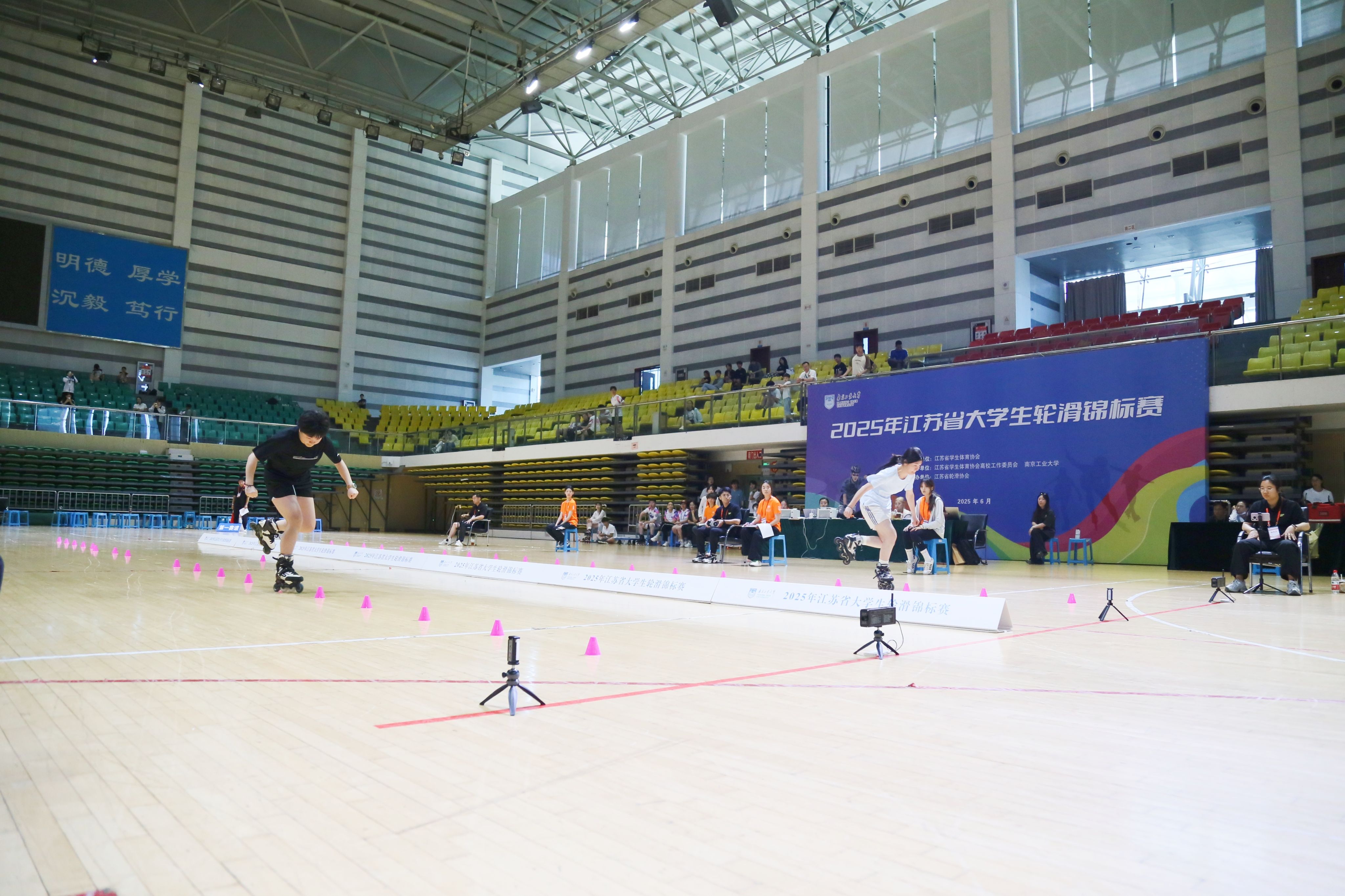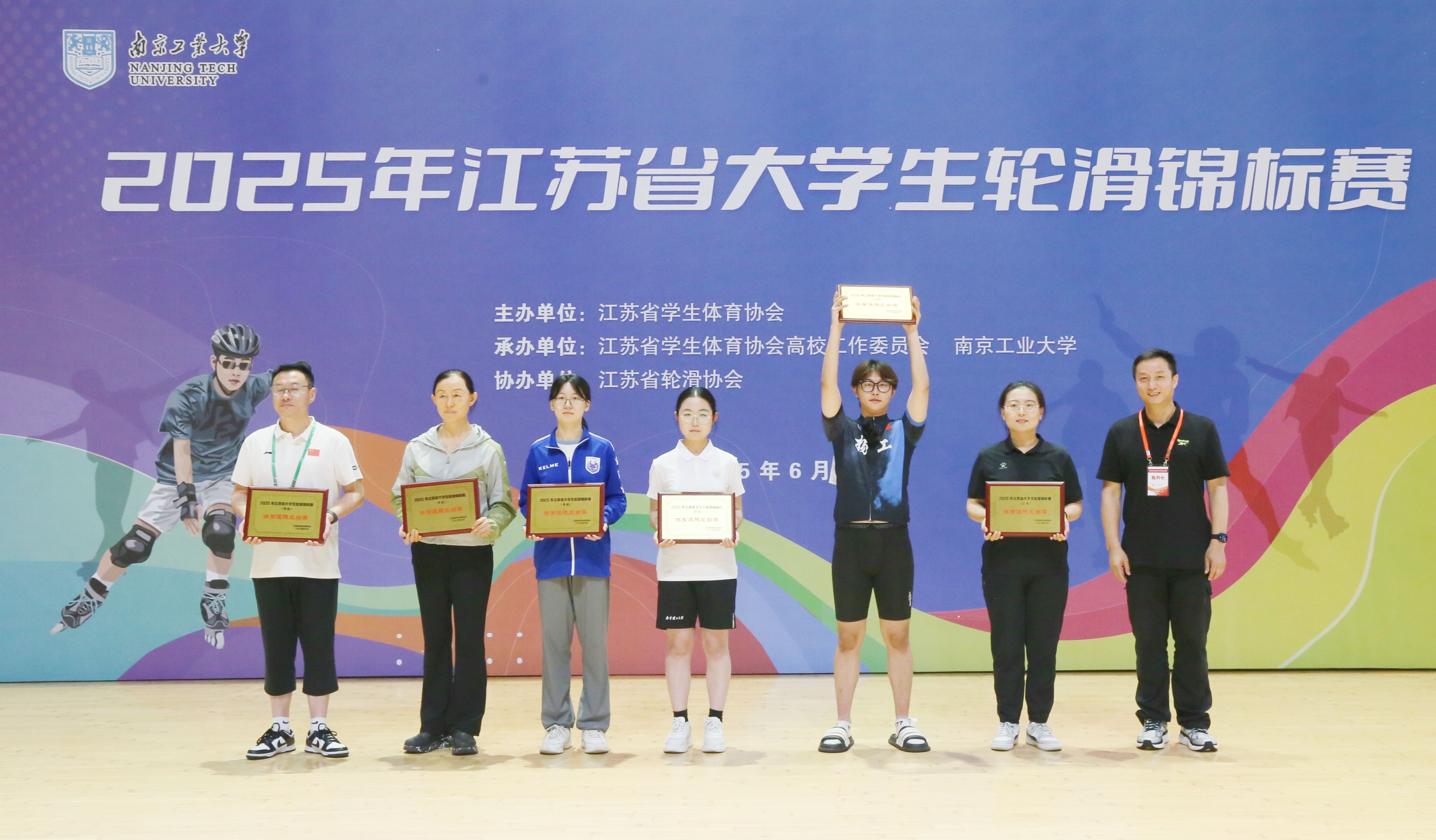 6月27日-29日,由江苏省员工体育协会主办,江苏省员工体育协会高校工作委员会和太阳成集团tyc234cc承办的2025年江苏省老员工轮滑锦标赛在公司行健体育馆顺利举办。来自全省22个高校143名运动员、教练员参赛。比赛分为甲组(本科院校普通组)和乙组(高职高专院校组),设置男子、女子组单脚速度过桩、双鱼速度过桩、前蛇速度过桩共6个竞赛项目。