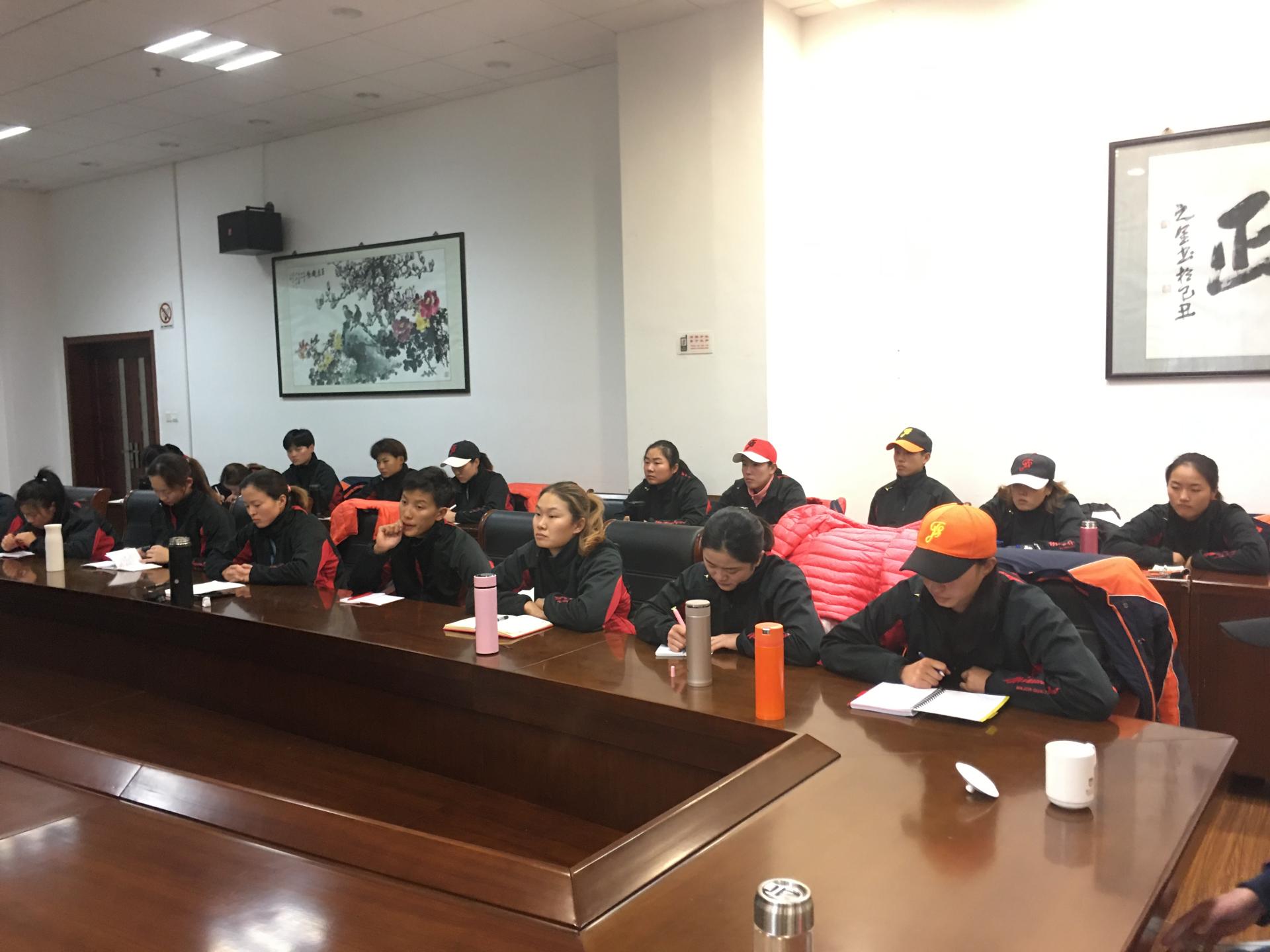12月23日下午,太阳成集团tyc234cc-江苏女垒在体育馆VIP3会议室召开年度总结暨冬训动员大会。公司党委常委、副董事长赵志宏,江苏省体育局手曲棒垒球管理中心副主任石文虎,体育部主任张天峰,体育部总支书记刘涛,江苏女垒主教练宋秋元,全体女垒队员及有关人员参加会议。会议由体育部主任张天峰主持。