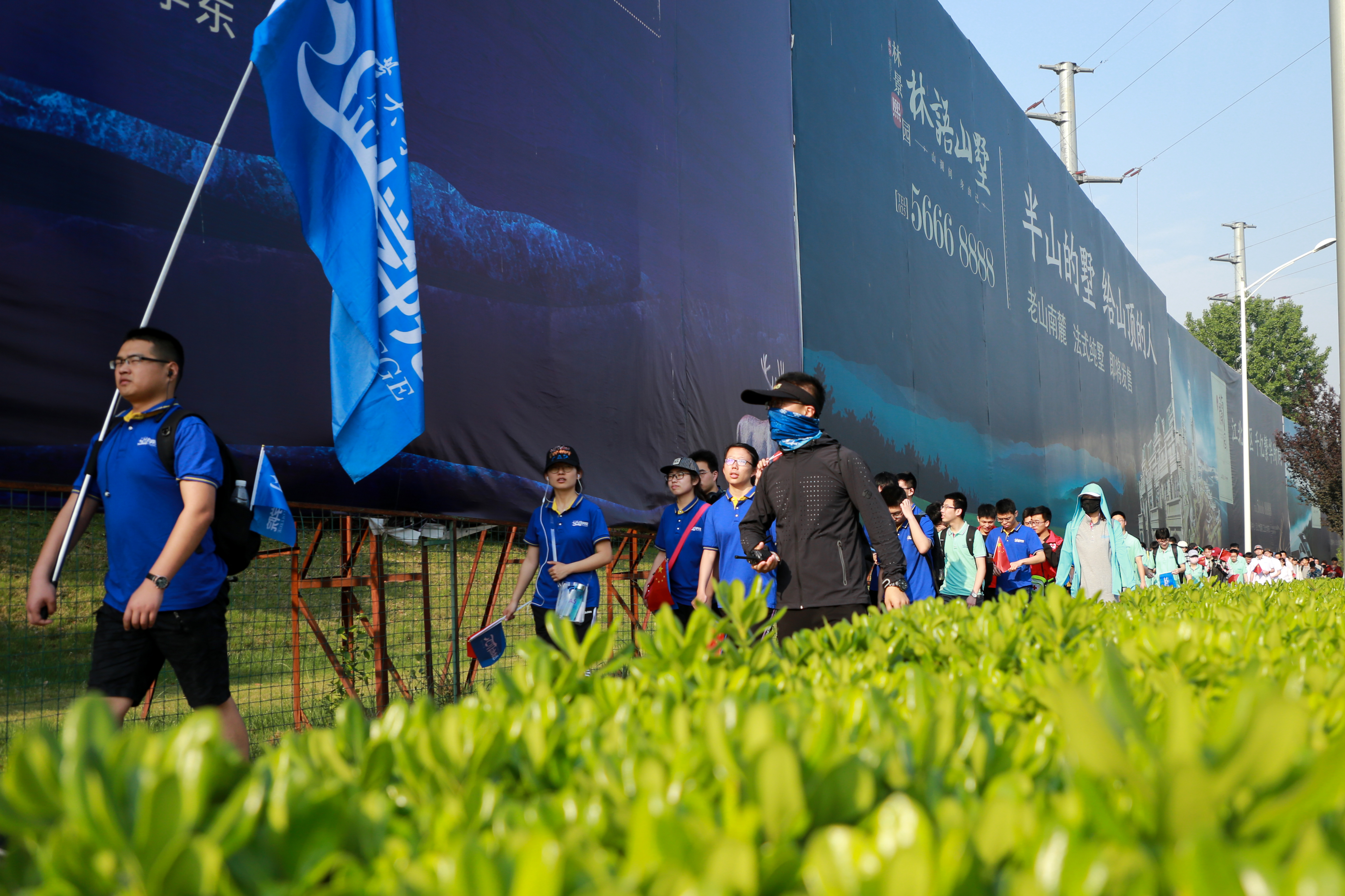 活动从6:30开始,14公里接近5小时的远距离徒步行走,对老师和同学们也是一项极大的考验。因此,在出发三天前体育翻转课堂教学团队现场勘察路线,详细记录,排除安全隐患。出发前老师对同学们的集中宣讲,让同学们对途中要注意的事项和安全意识的培养都进行了充分的提醒,虽然实际行进过程中遇到一些困难,在爬坡的疲劳期,有很多员工节奏跟不上,是我们的体育老师积极控制行进节奏,帮助员工尽快适应和统一行进节奏,将个别出现身体不适的女生及时护送上救护收容车,但绝大多数同学还是彼此鼓励着坚持走完了全程。值得表扬的是2017级的同学们对此次活动准备充分,每个班级都精心挑选了合唱歌曲,在中途休息时进行集体合唱,现场气氛热烈,收获颇多。