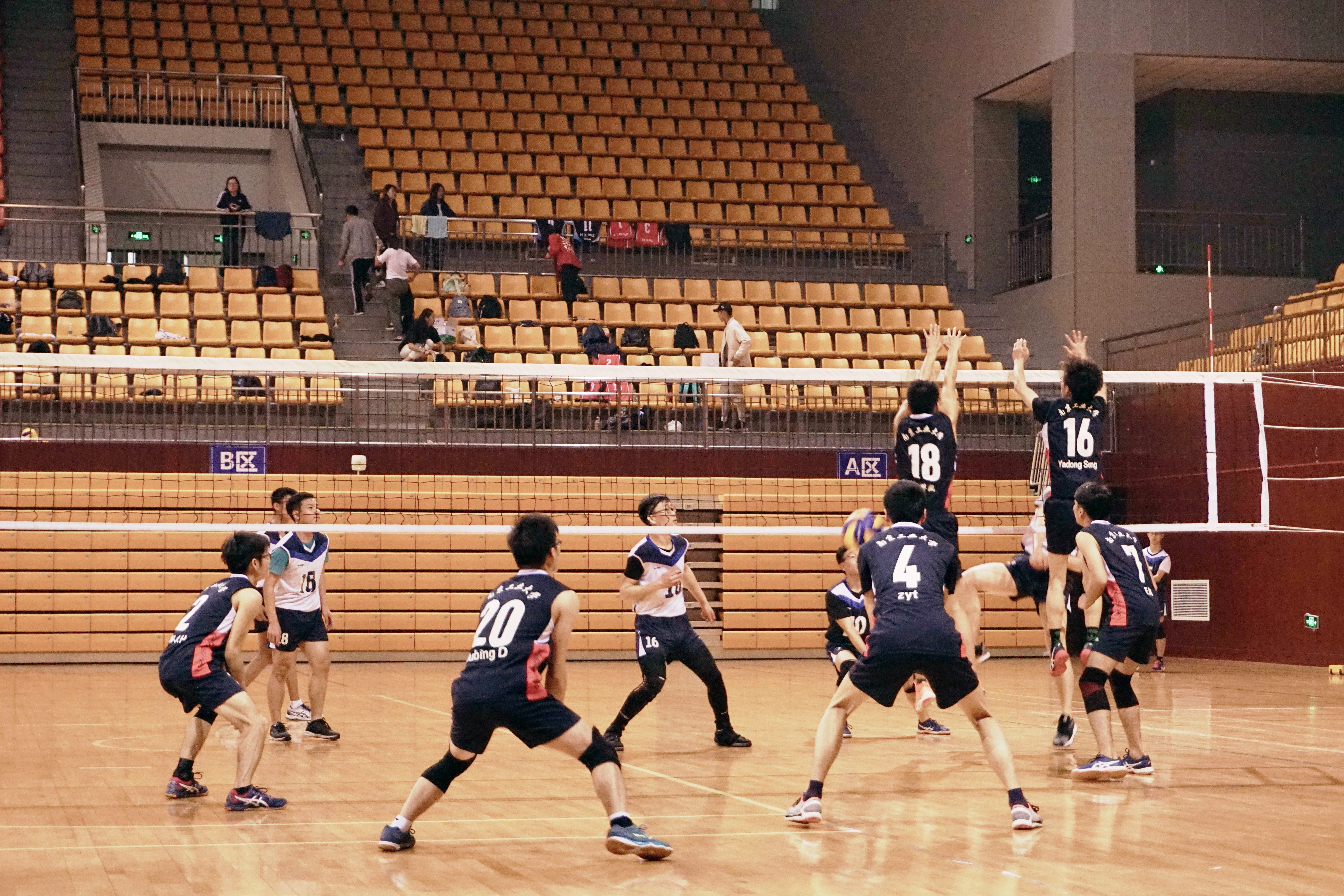 在淘汰赛中,首场比赛遭遇实力强劲的南京邮电大学,公司男子排球队鼓足信心,在第一局比赛中一度领先对手,给对方造成了极大的压力,然而对手技高一筹公司惜败进入5678名的角逐。但公司男排并没有放弃,在随后与小组赛领先的南京理工大学的比赛中,吸取教训,气势如虹,打出了公司男排的精神,最终以2:0获胜。在最后一场与东南大学的比赛中,公司男排再接再厉,拼尽全力咬住比分,最终获得第六名的好成绩,赢得了观众和兄弟院校的掌声和欢呼。