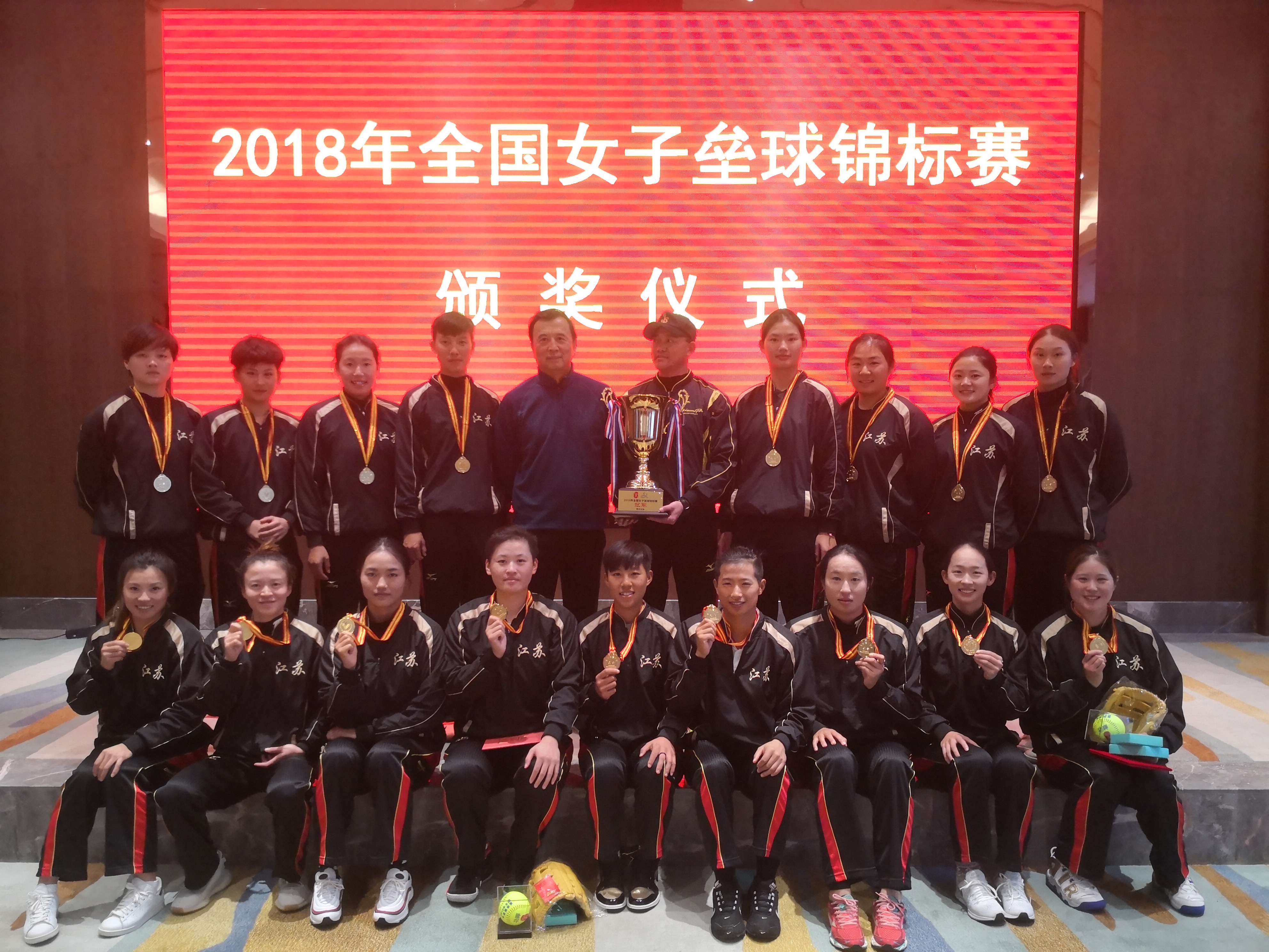 由中国垒球协会、贵州省体育局、黔西南州人民政府举办,黔西南州体育局、义龙新区管理委员会承办的2018年全国女子垒球锦标赛于12月21日在贵州义龙圆满落幕,南工江苏女垒以8战全胜的战绩再次夺得冠军!运动员平凡获得最佳投手奖、徐义获得最佳安打奖、主教练宋秋元获得最佳教练员奖。李欢、陈佳二位队员获得最佳阵容奖!