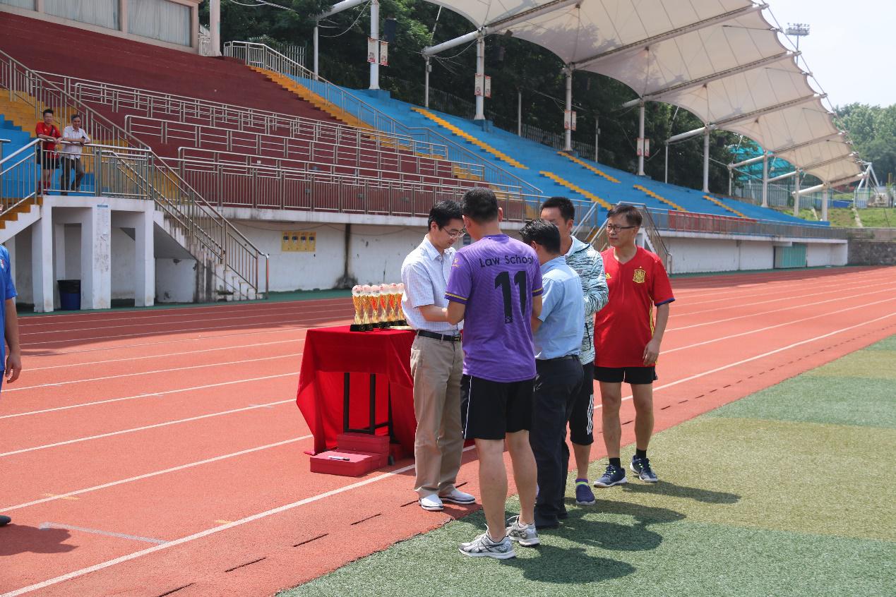 随着最后一场比赛的终场哨声吹响,本届赛事的各个奖项也全部揭晓。最终,机关直属联队、体育部摘得桂冠,数理外语联队斩获亚军,员工队、计算机建筑公司联队获得季军,先进材料研究院、化工公司、材料公司、机械公司分别获得四、五、六、七名,环境电控公司联队和法公司并列获得第八名。计算机建筑公司联队和机械公司获得最佳组织奖,法公司获得体育道德风尚奖。蔡海彪(机关直属联队)获得最佳射手奖,马会利(先进材料研究院)获得最佳守门员奖。