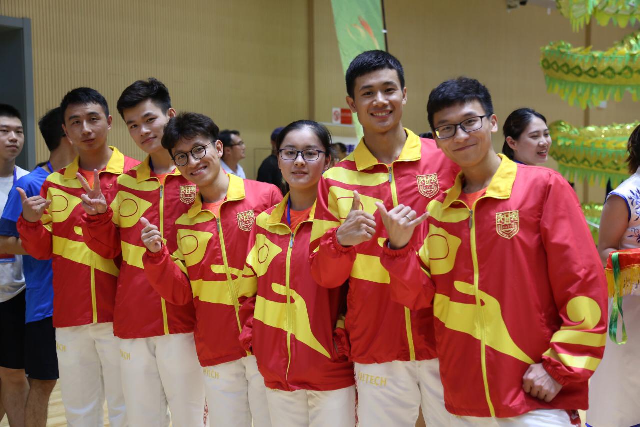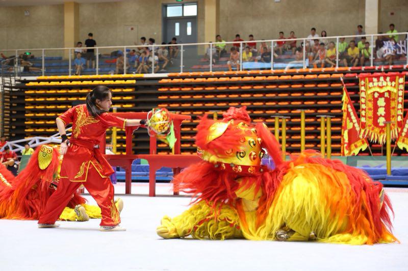 7月13日第一天的第一项比赛是北狮速度竞赛,这个项目舞狮人需要完成跳跃,滚背,托举,旋转等技巧过程,同时还要以最快速度跑完全过程。建筑1403班刘洋,制药1501班刘超,电智1502班丁旭哲,生工1502郑中港,营销1701班周忻恬(女)五位同学,是公司首次出场的队伍,五位同学一鼓作气,零失误完成全过程,随着一声响锣,公司北狮队以1分09秒的最快成绩,以3秒的优势领先,一支独秀,秒杀所有队伍,在开赛第一天的第一项竞赛中斩获金牌,收获18分,迎来开门红。