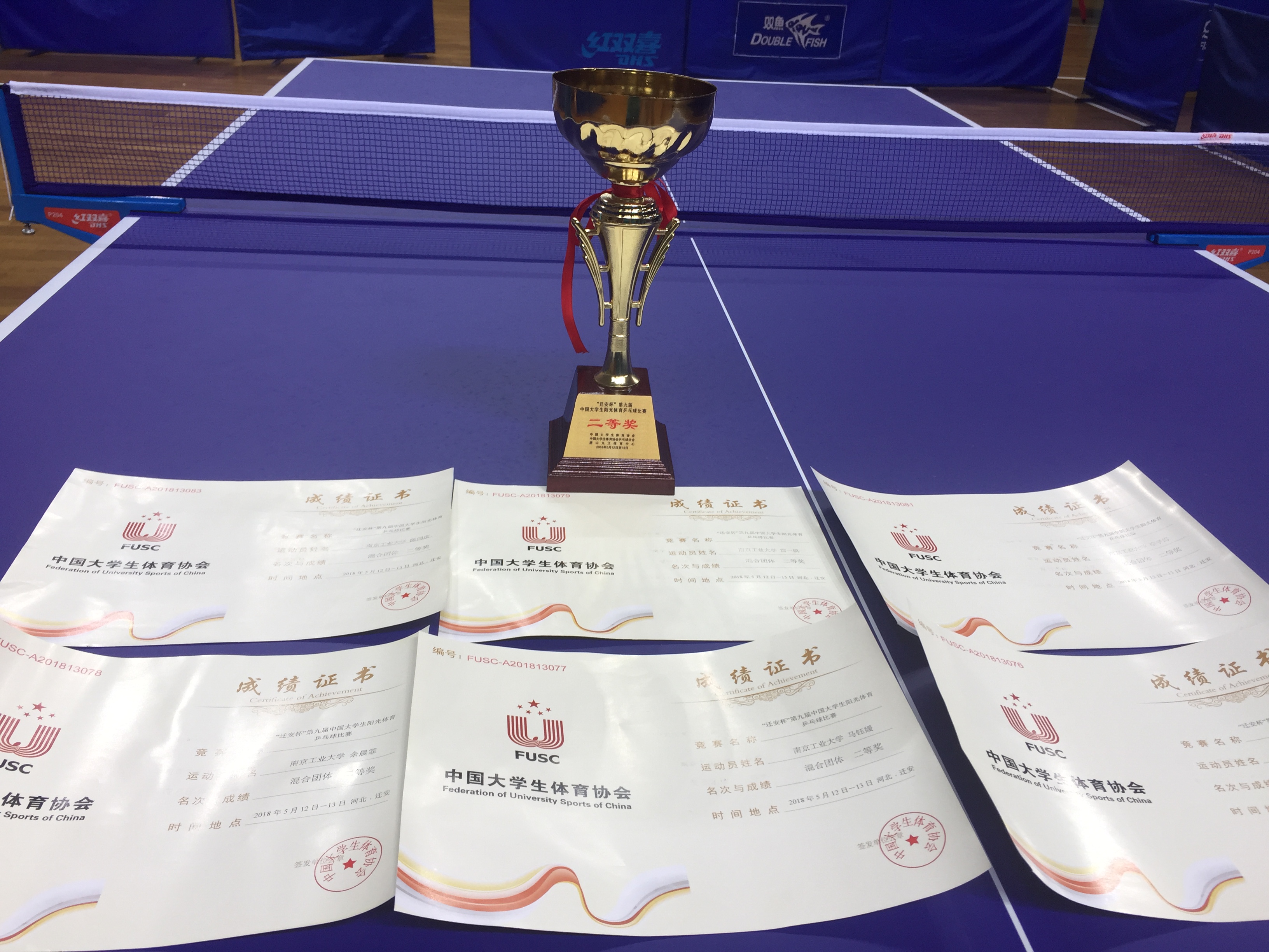 公司老员工乒乓球队勇夺第九届中国大学阳光体育乒乓球比赛二等奖