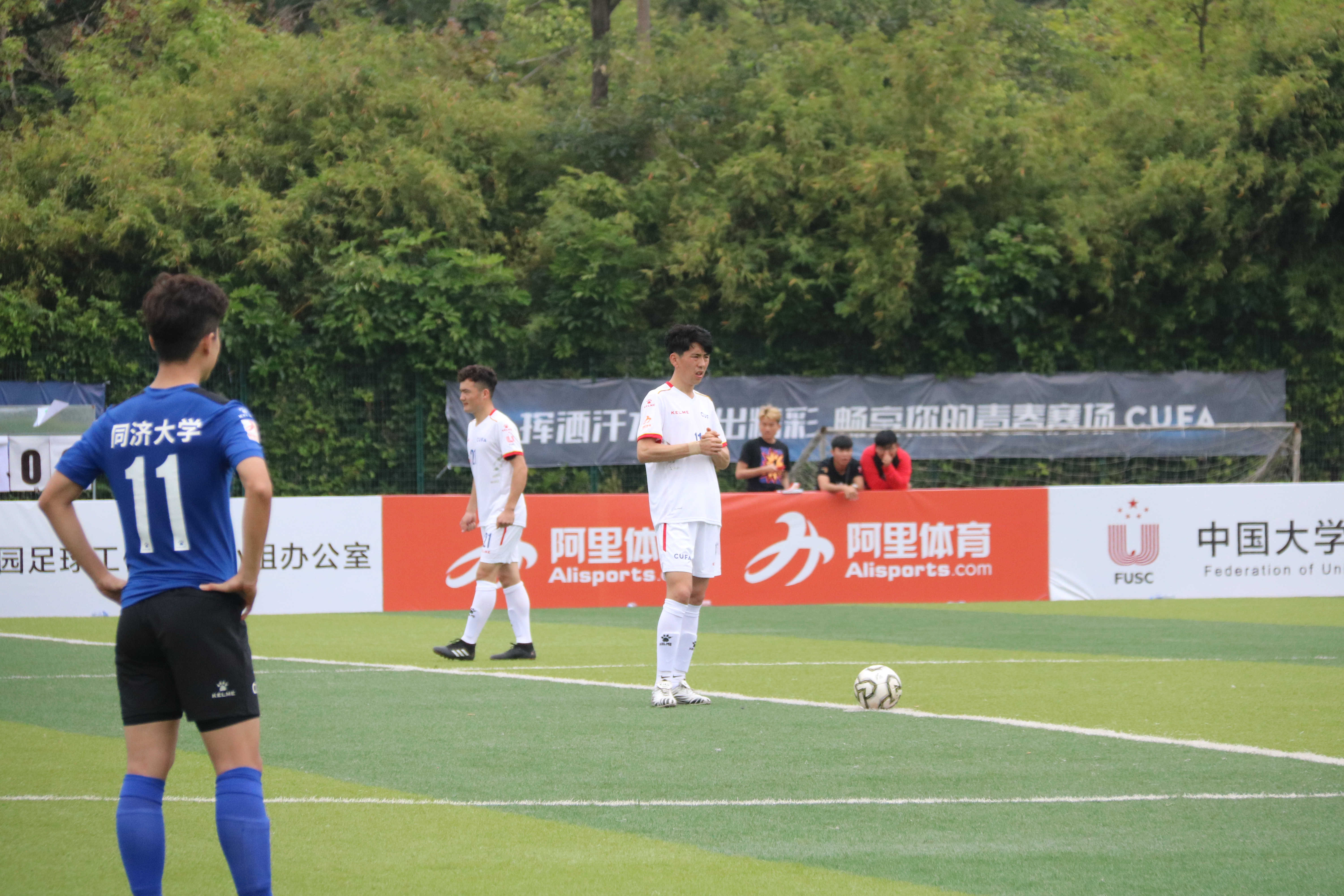 小组内拥有三个省内赛的冠军,只是“江苏亚军”的南工把球队的姿态放到了最低。第一场比赛面对同济大学,面对对方身高体壮的队员,球队制定了坚决打两个边路的打法,两个边路的4名球员来回奔袭,表达着对赢球的渴望。比赛的转折点在第44分钟,叶尔兰的一记传中,皮球在空中划出一道诡异的弧线后飞进了球网,球队带着1:0的优势进入到了中场,下半场比赛,趁着同济必须进攻的着急心理,球队乘胜追击,再入2球,最终,3-1拿下了首场比赛。