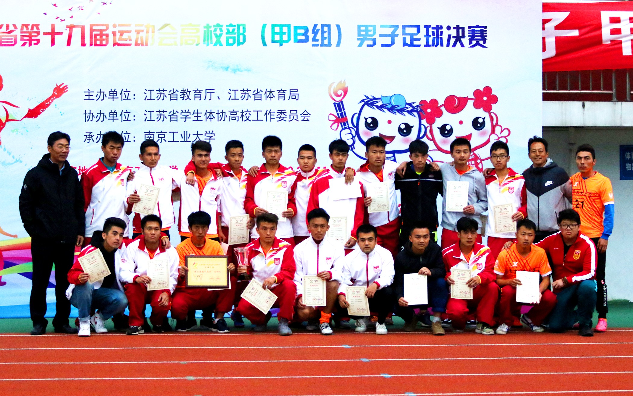 2017年10月27日-11月3日,第十九届江苏省运动会高校部男子足球甲B组比赛在公司举行,来自全省11所高校的男子足球队为了象征着全省高校部普通生男子足球的最高荣誉发起最后的冲击!