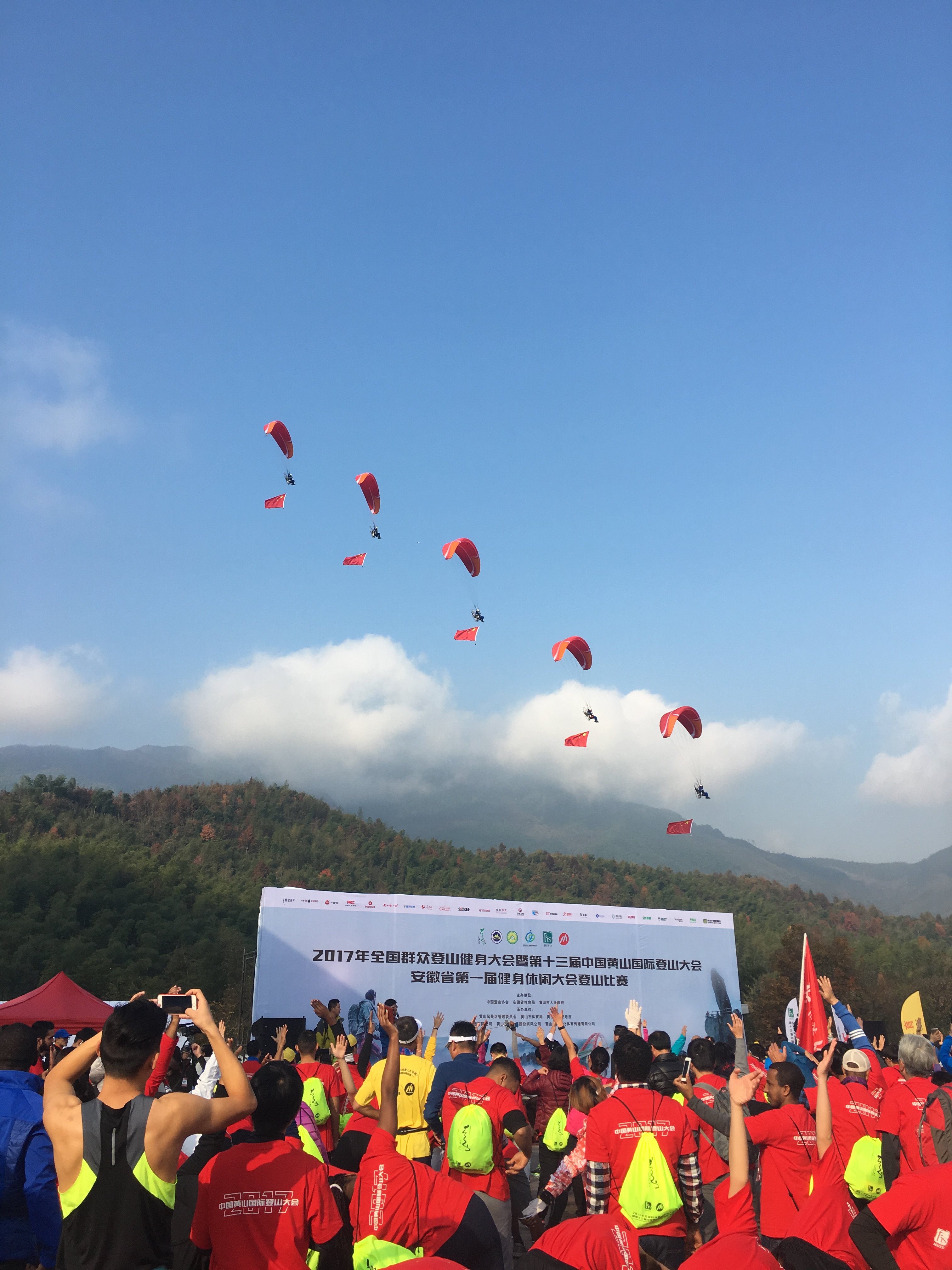 11月12日上午,2017年第十三届中国黄山国际登山大会暨全国高校登山赛在黄山风景区成功举办!本次活动共吸引3000多名热爱登山、热爱户外、热爱体育的国内群众积极参与,还有来自牙买加、哈萨克斯坦、坦桑尼亚、科特迪瓦、巴基斯坦等多个国家近200名外国友人加盟,在深度践行全民健身理念的同时,充分实现文化交流之目的。