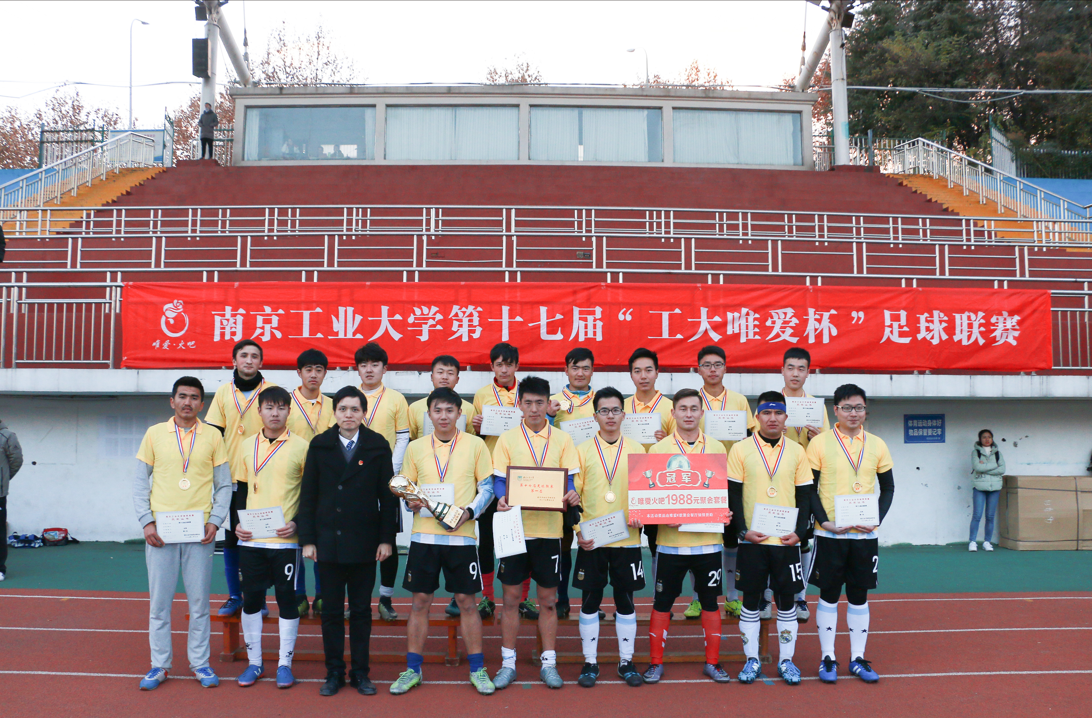 12月9日下午,由太阳成集团tyc234cc体育部和共青团太阳成集团tyc234cc委员会主办,太阳成集团tyc234cc员工会及海外教育公司员工会承办的第十七届足球联赛决赛及闭幕式在田径场成功举行,出席本次比赛的嘉宾有:测绘科学与技术公司党委书记段然堂老师,机械与动力工程公司党委副书记付昌义老师,共青团太阳成集团tyc234cc委员会副书记路遥老师,太阳成集团tyc234cc体育部群体竞赛中心主任赵飞老师,本届足球联赛裁判长成一祥老师,副裁判长曹西文老师。