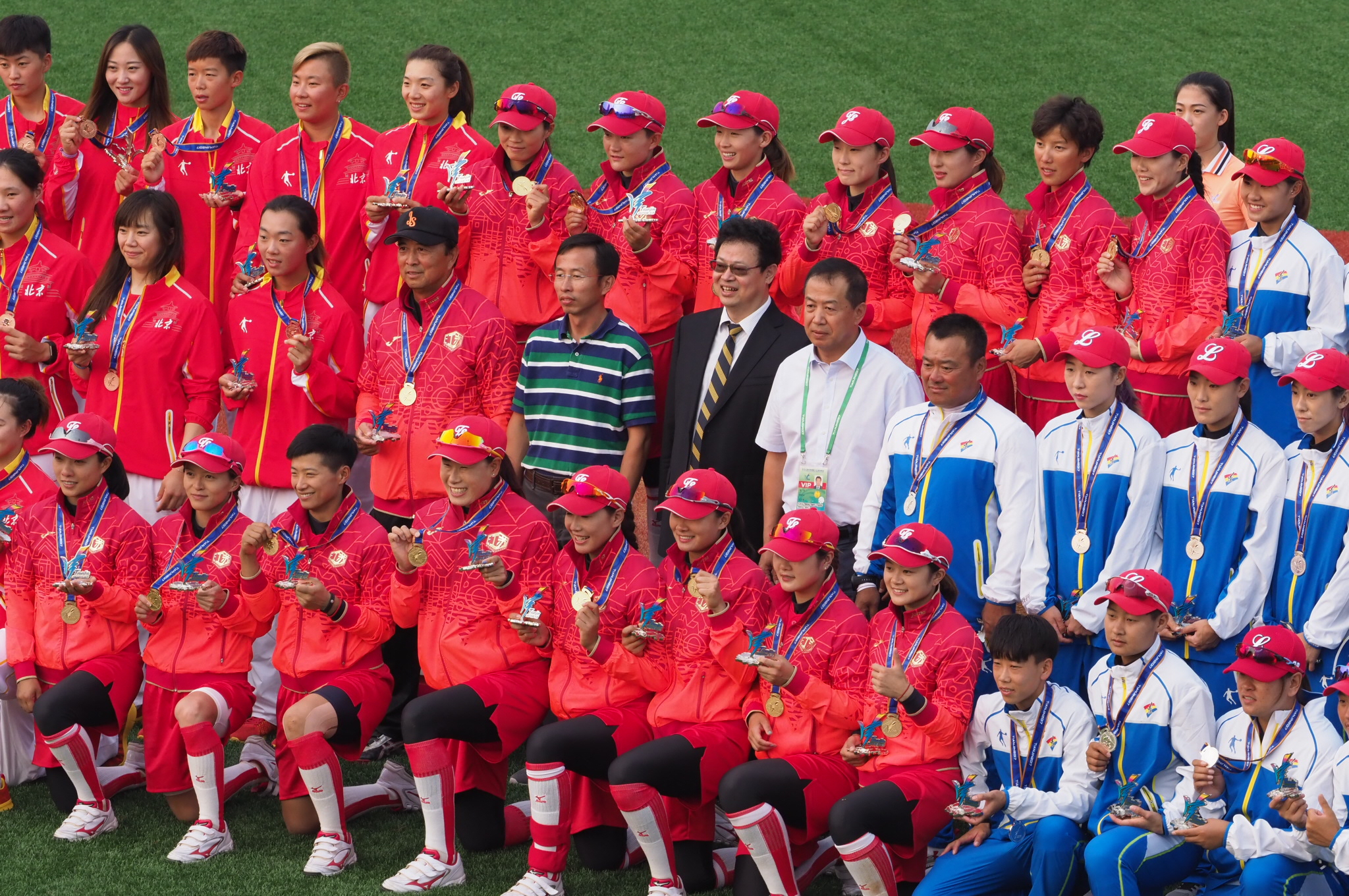 回顾女垒蝉联金牌历程,每场竞争之激烈、对抗之残酷,想战胜对手就得有狭路相逢勇者胜的决心!小组循环赛我队以四胜一负的战绩提前进入前三强,但在9月1日小组循环赛输辽宁后整个队伍的势气不是很高涨,虽然这场比赛输赢对我队都毫无影响,双方也都没有派出主力投手参与比赛,但看得出来队员们特别想赢这场比赛,在单循环赛中就严重的背上了竞技体育里最可怕的想赢怕输的思想!在比赛中发挥失常,配合失误。好在经过领导、教练给队员的及时疏导。在9月3日佩琦制争冠亚席位中力克辽宁,以4:3昂首挺进9月4冠亚决赛。在争夺金牌比赛中,队员们不以物喜,不以己悲。再6局下,满垒有人的情况下,凭借一击漂亮的本垒打,以6:1再克我们的老对手辽宁队,最终蝉联金牌!