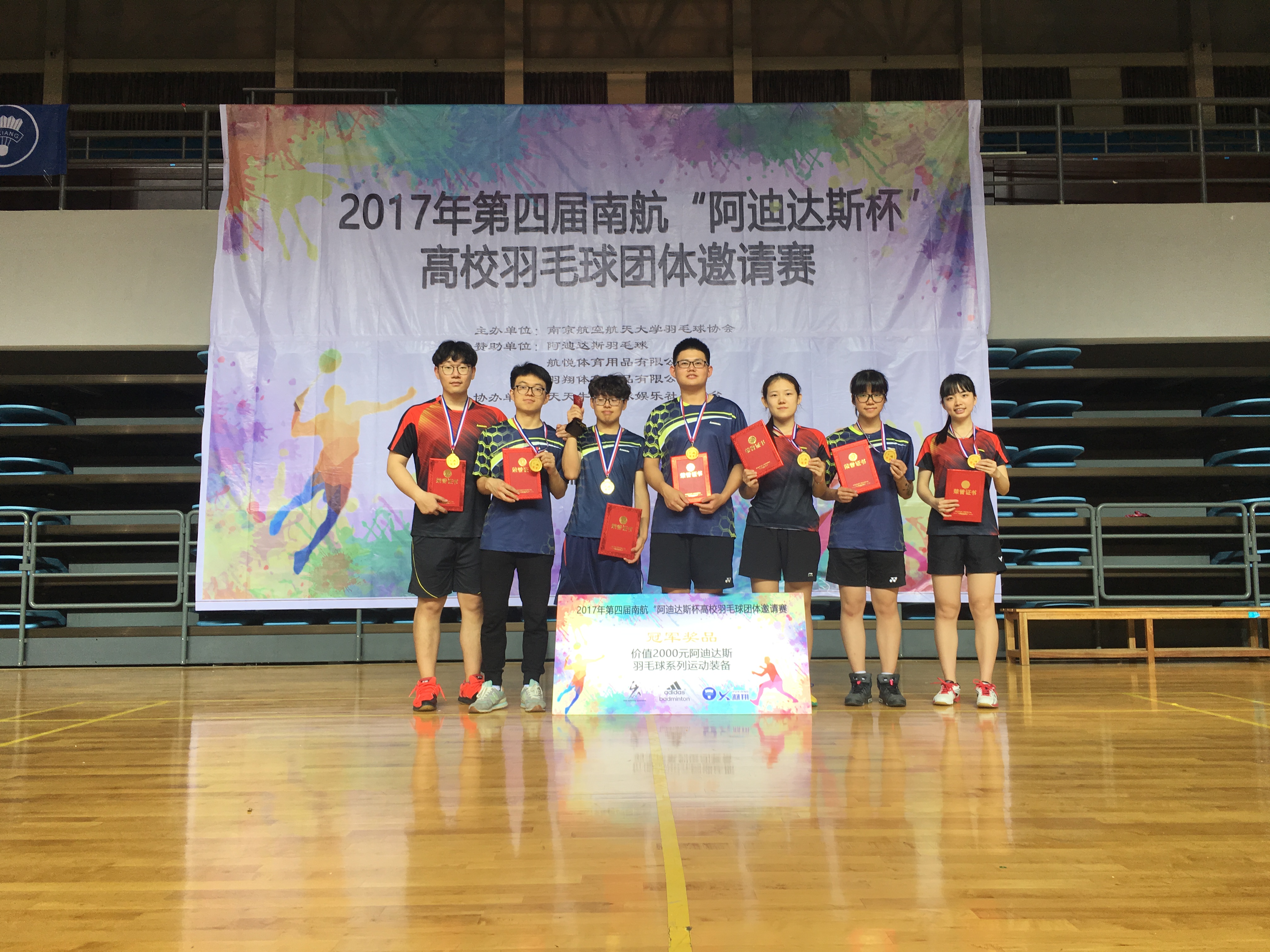 2017年第四届南航“阿迪达斯杯”高校羽毛球团体邀请赛于5月7日下午在南京航空航天大学落下了帷幕。比赛由南京航空航天大学羽毛球协会主办,并采用混合团体的形式进行,分设了混双、男单、女单、男双、女双五项,吸引了南京市22所大学共200多名运动员参赛。经过两天的激烈角逐,最终,公司羽毛球队凭借顽强拼搏的体育精神,连克强敌,勇夺冠军,也创造了公司在本次赛事的最好成绩。