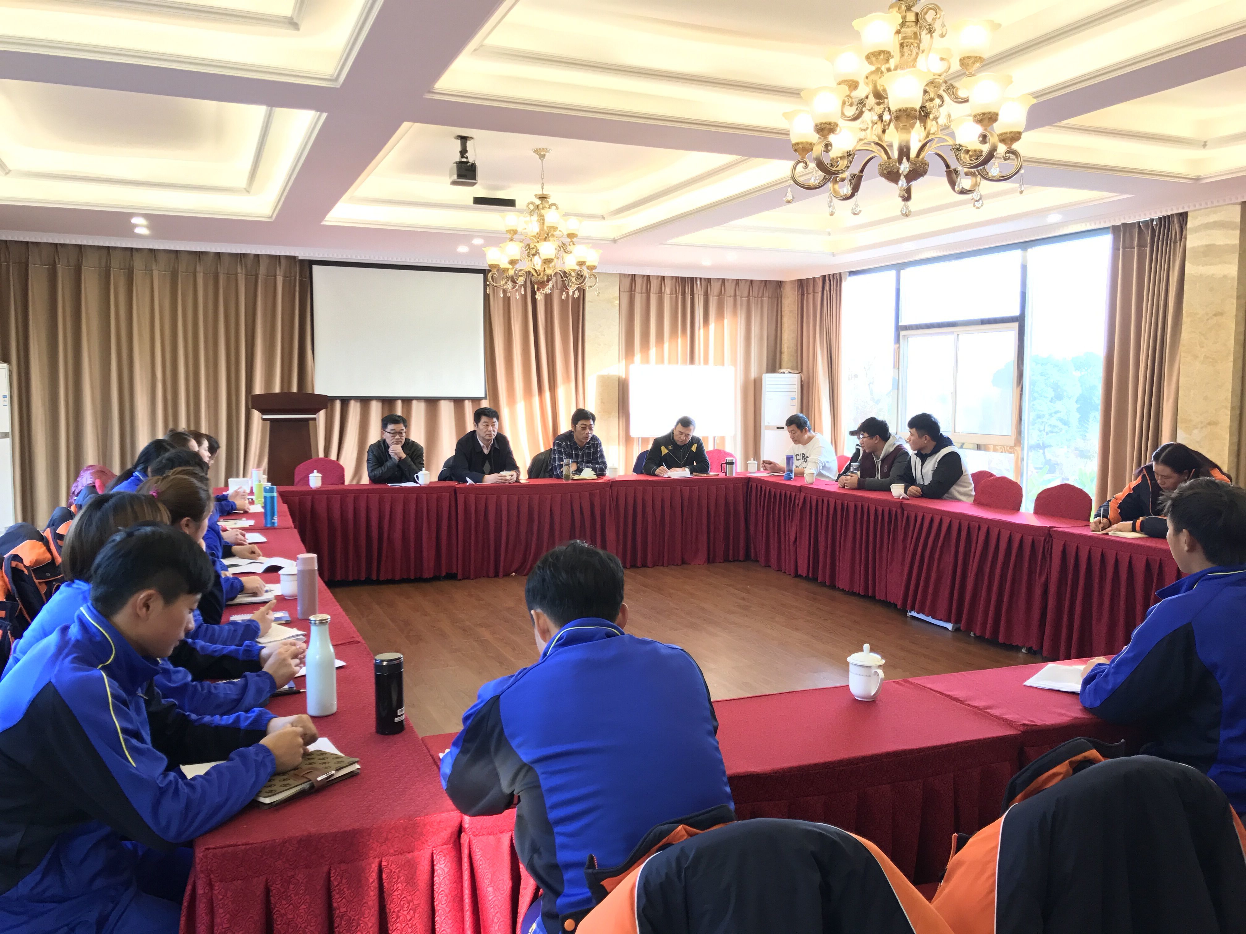 11月24日下午,在常州武进,校江苏女垒召开了2016年度训赛总结大会暨备战十三届全运会动员会。省手曲棒垒中心主任严小平,常州市专管中心主任姚治前,校体育部主任张天峰,江苏女垒主教练宋秋元,教练员周育红、副领队刘峰、江苏女垒管理贡新烨参加了会议。会议由校体育部主任张天峰同志主持。
