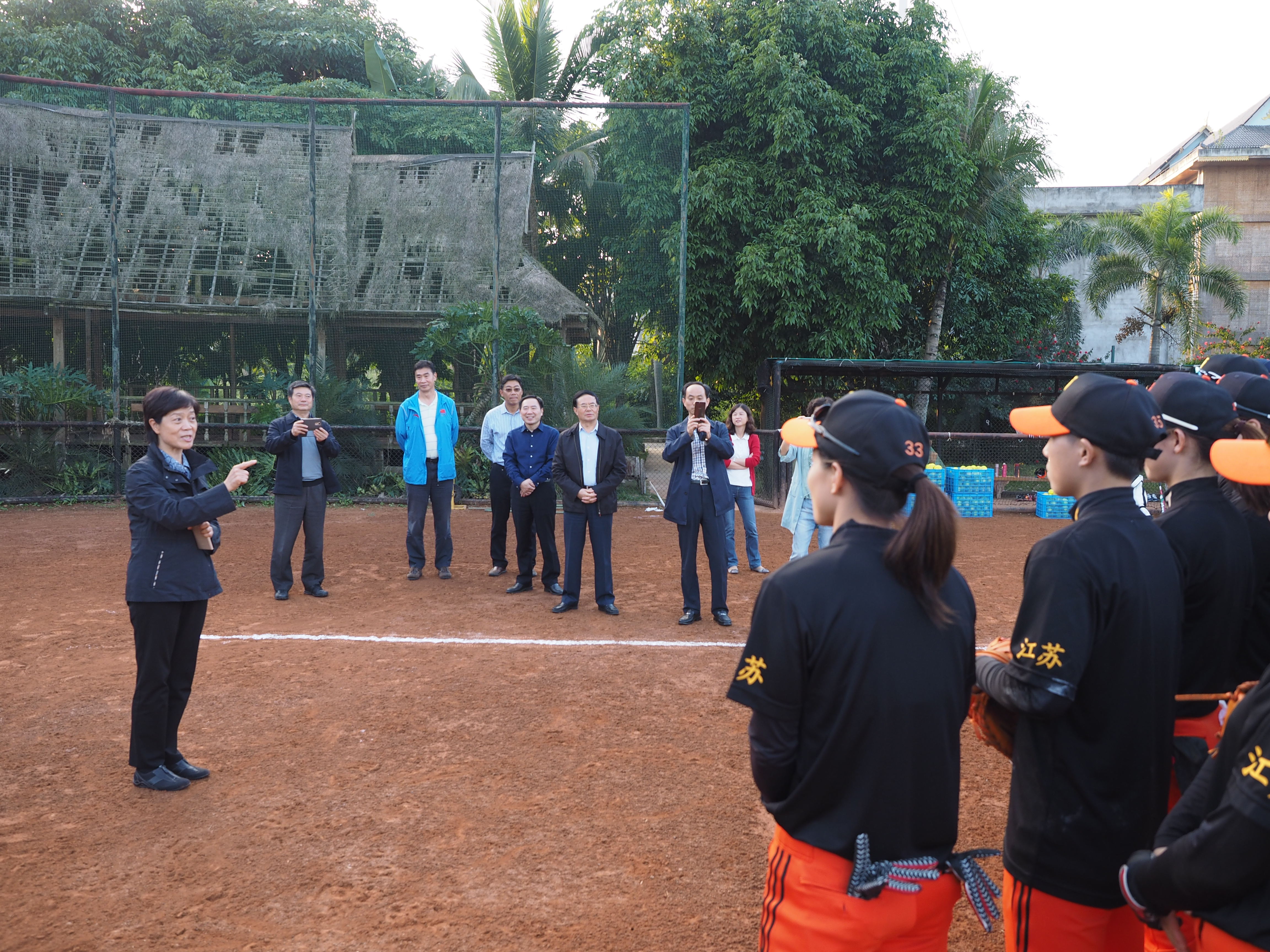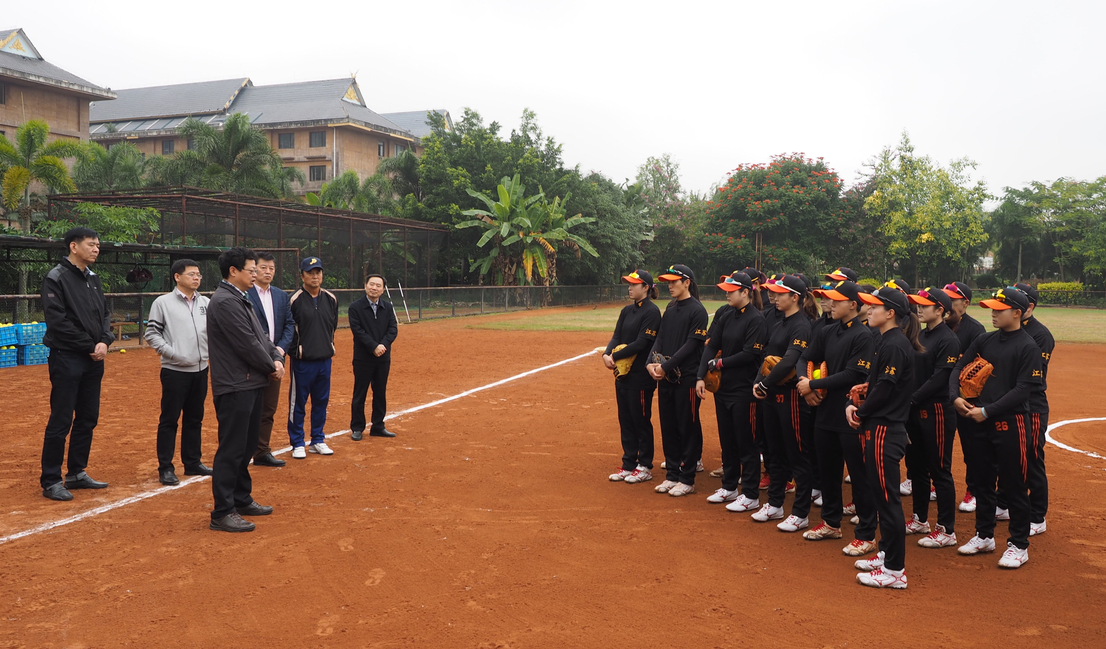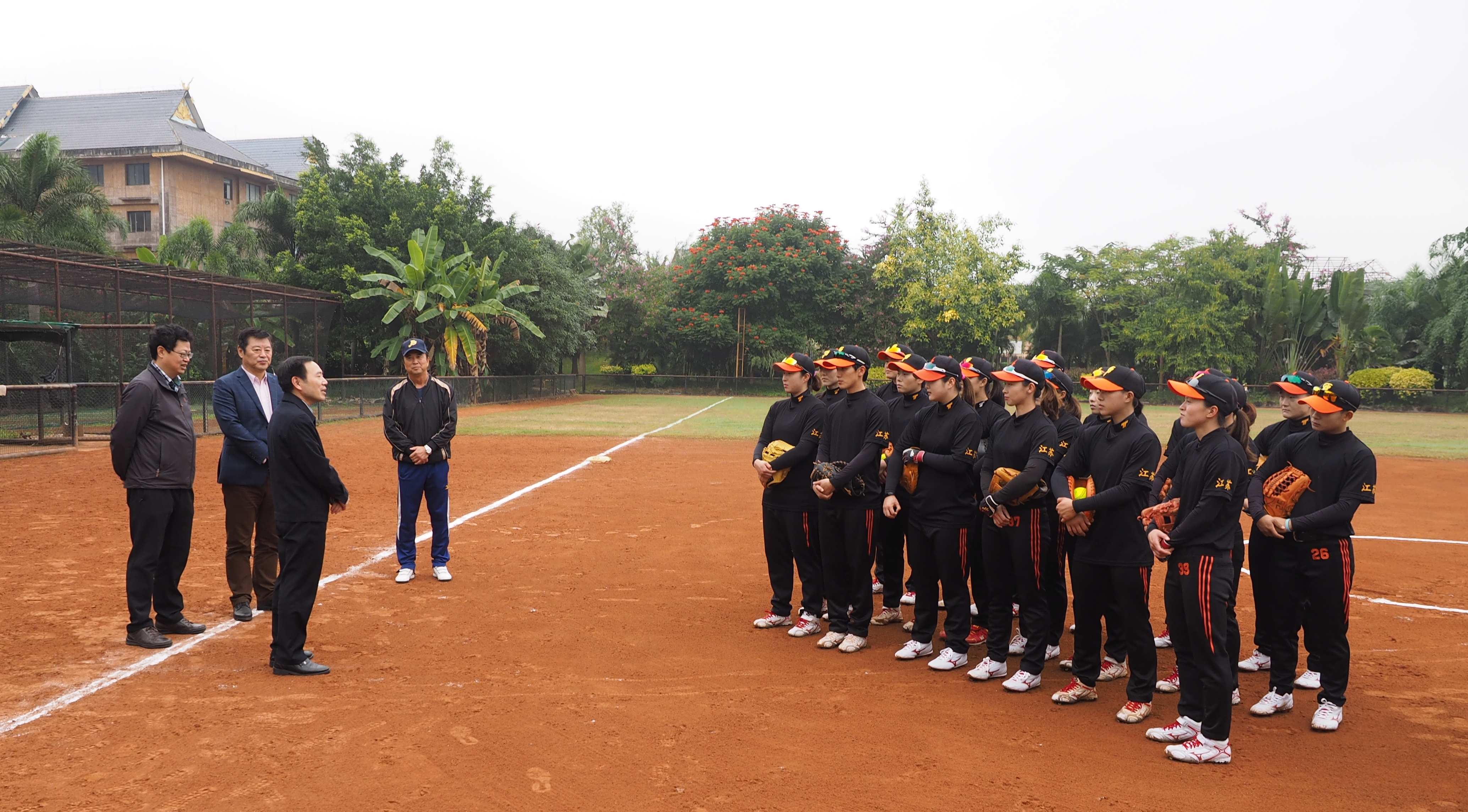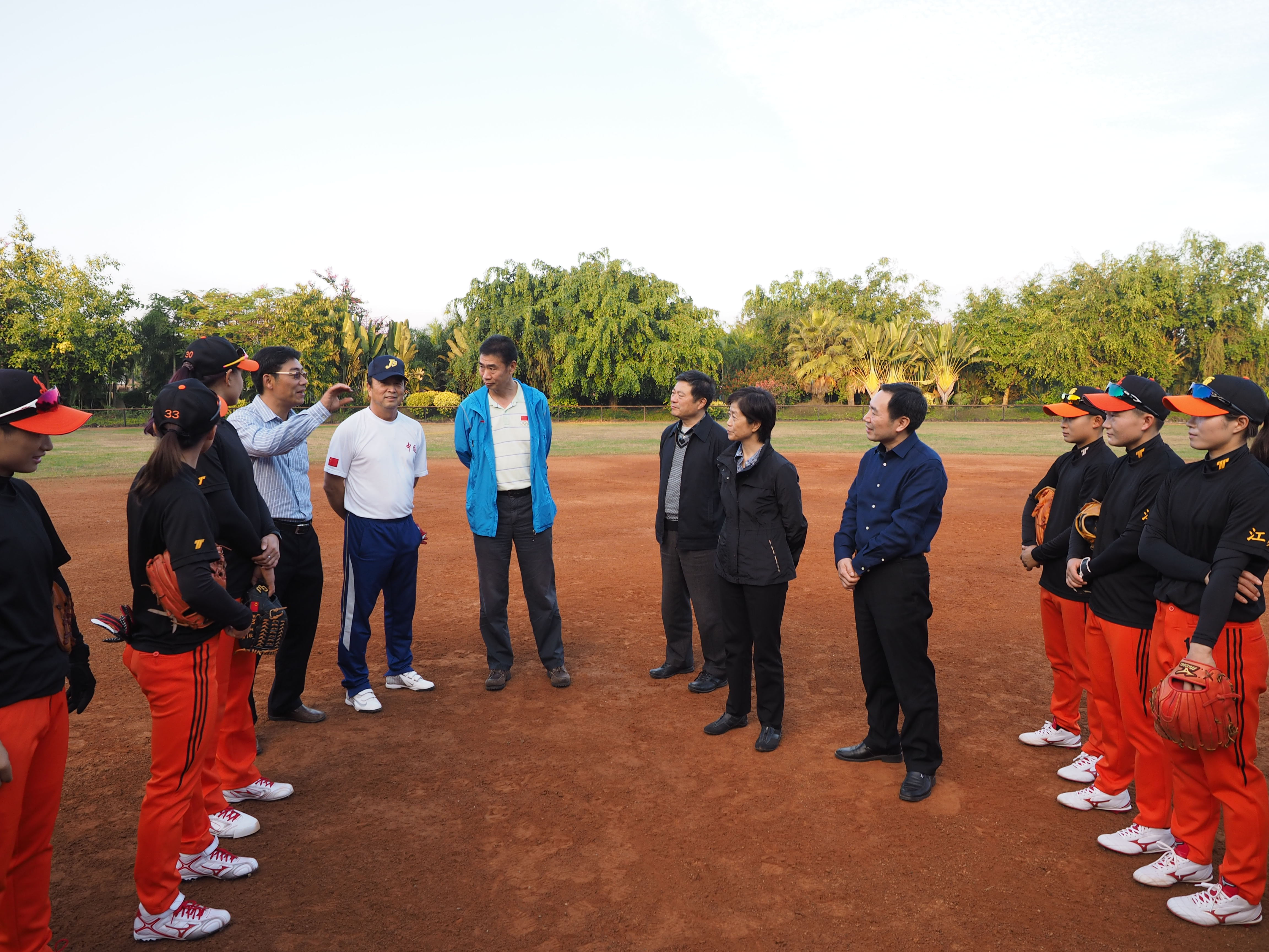 12月8日下午,江苏省政协副主席许津荣在省政协副秘书长程玉松、省政协医卫体育委员会主任李一宁、副主任殷宝林、省体育局局长陈刚、副局长王伟中、办公室主任李松、手曲棒垒球管理中心主任严小平的陪同下,远赴云南看望为备战全国第十三届运动会转训西双版纳训练基地的公司江苏女垒全体运动员、教练员和工作人员。公司副董事长崔益虎、体育部主任张天峰全程参加了活动。