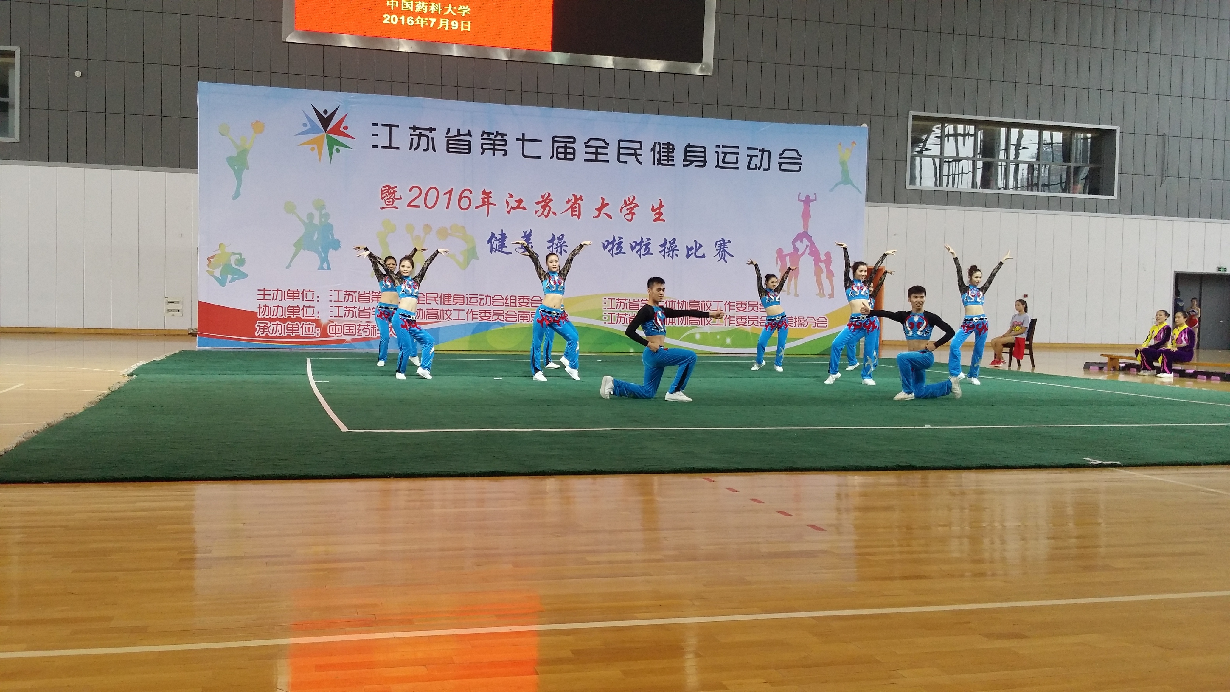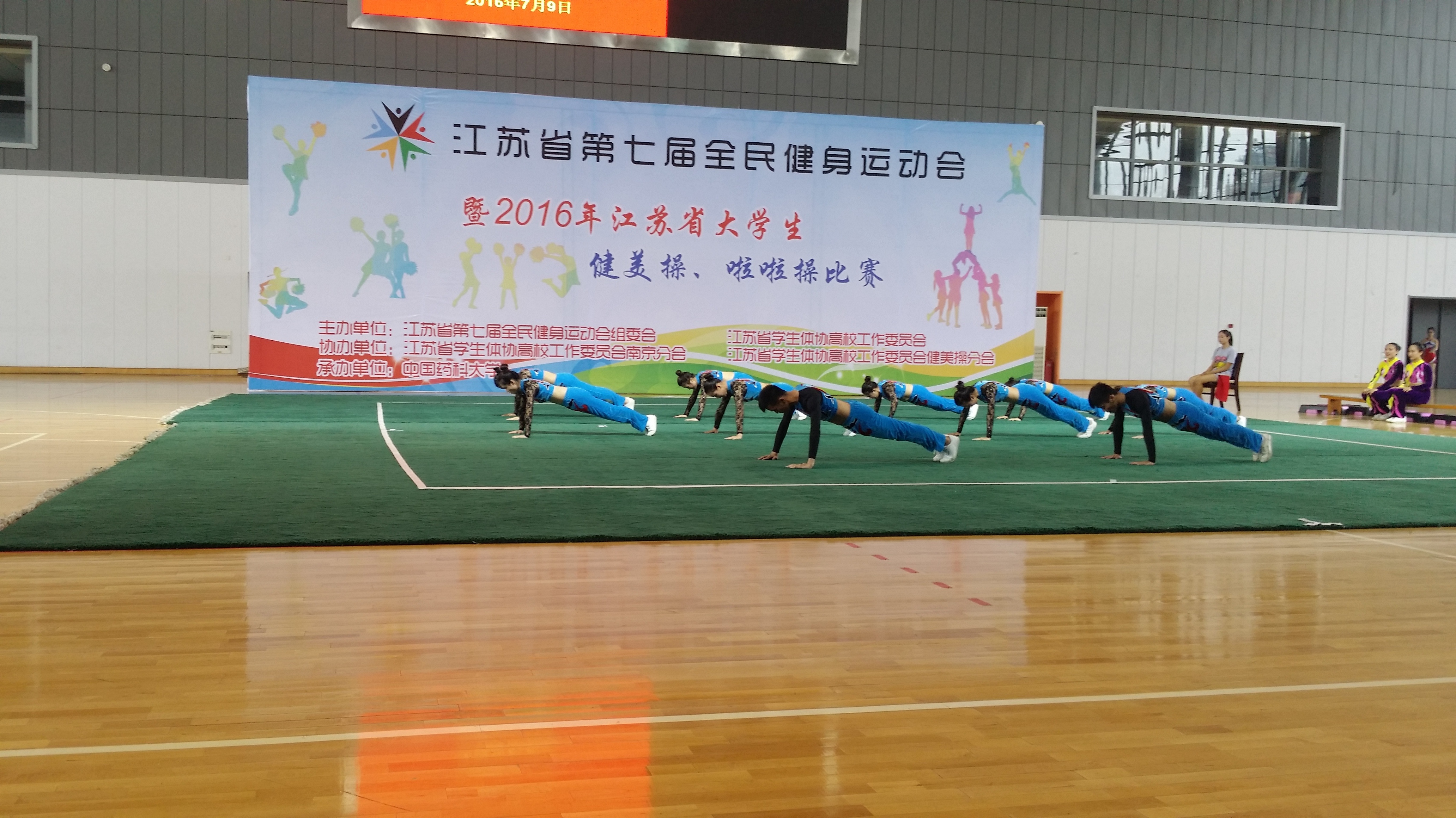 78日至9日,江苏省第七届全名健身运动会暨2016年江苏省老员工健美操、啦啦操比赛在中国药科大学江宁分校举行,公司健美操队在王佳玥、薛敏老师的带领下,和兄弟院校展开了激烈的角逐,最终,公司健美操队喜获有氧舞蹈第一名、大众健身操第一、男子单人操第一名,花球啦啦操规定套路第二名,花球自编动作第二名的好成绩。