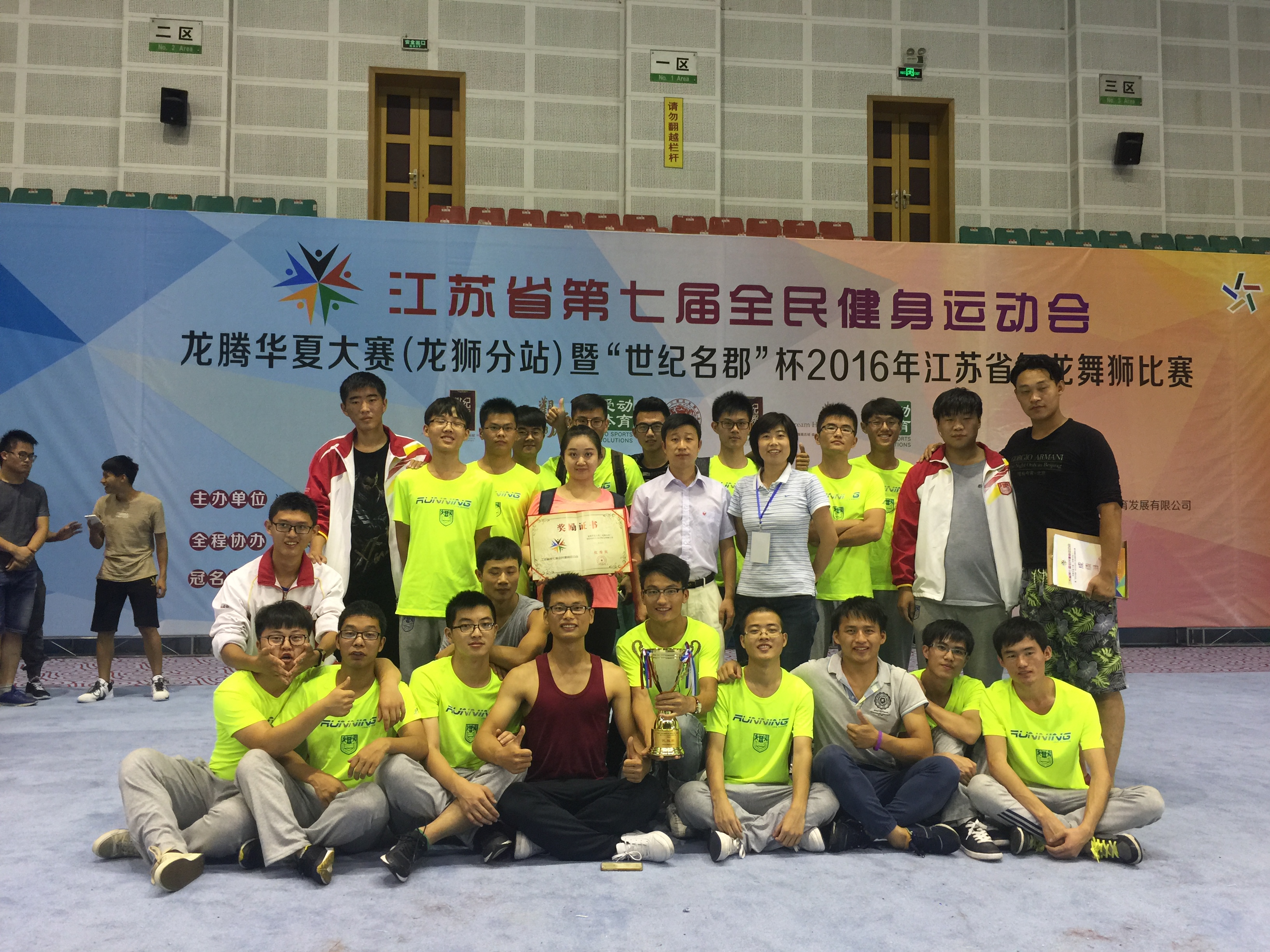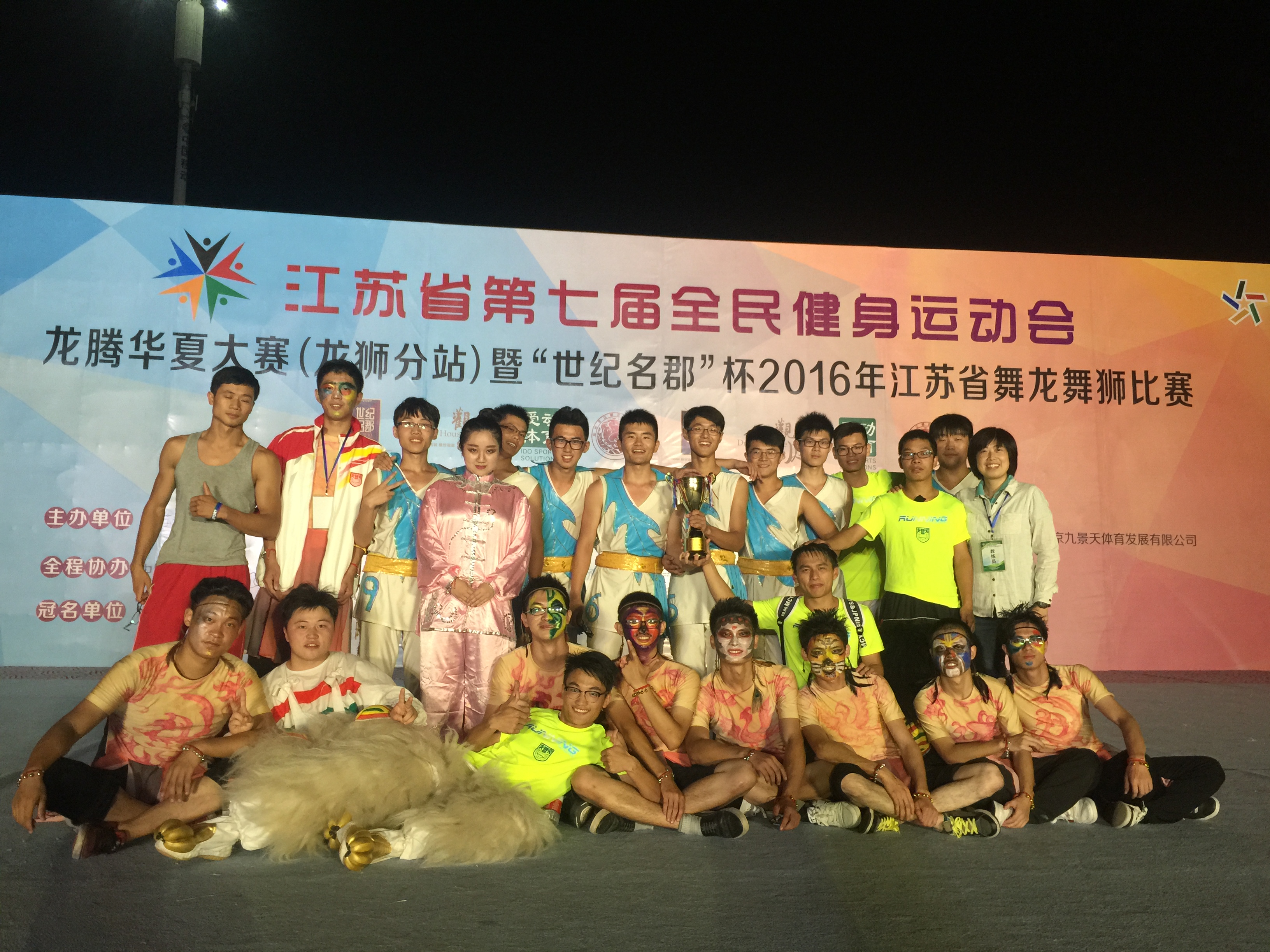 本次比赛共有来自全省13个市代表团、各社会组织及省内高校20多支龙狮队、约200名运动员参加。社会和高校的传统劲旅包括有南京理工大学代表的江都泰德队、太阳成集团tyc234cc、常州市代表队、南京邮电大学、溧阳龙狮协会代表队等。通过两天激烈的角逐,公司老员工龙狮队在王鸣骏和严燕老师的带领下,最终斩获传统龙狮第一名、舞狮自选第二名、舞龙第四名的优异成绩。