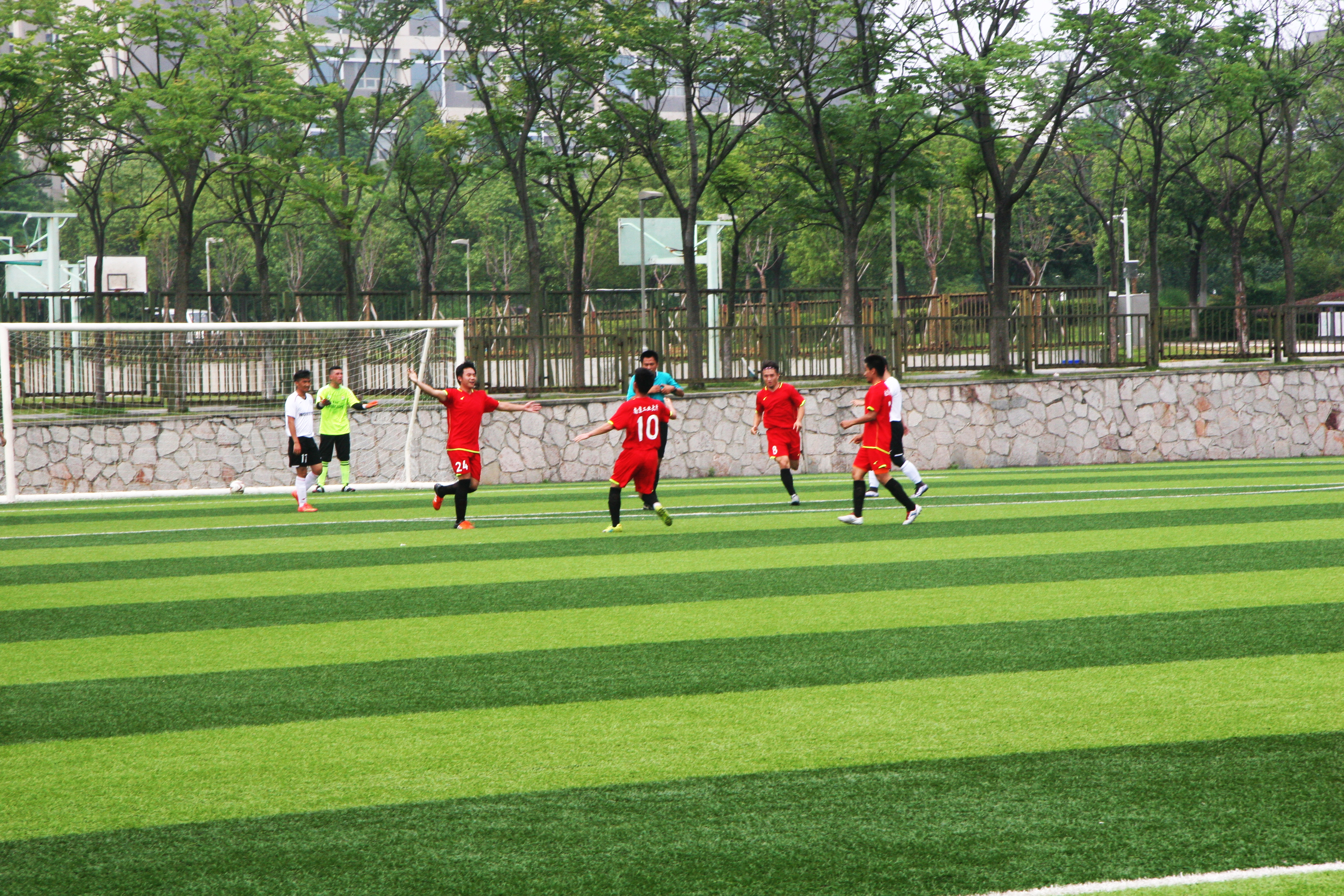本次比赛共吸引了17所高校参加,小组赛阶段,公司1胜2平以小组第二的成绩晋级淘汰赛。淘汰赛首轮,公司2:1战胜南师大,杀入四强,同时也取得了一个2016江苏省“省长杯”的正赛资格。半决赛对阵2015年冠亚军决赛的对手河海大学,公司男足两度落后,两度顽强扳平,2:2打平后直接进入到残酷的点球大战。可惜在点球大战中惜败对手,无缘决赛。在最后一场三、四名与南京农业大学中的争夺战,比赛再次进入到点球大战,最终凭借门将於正泽同学的神勇扑救,扑出了对方三个点球,从而赢得比赛,用一场胜利,为本次的比赛收官。
