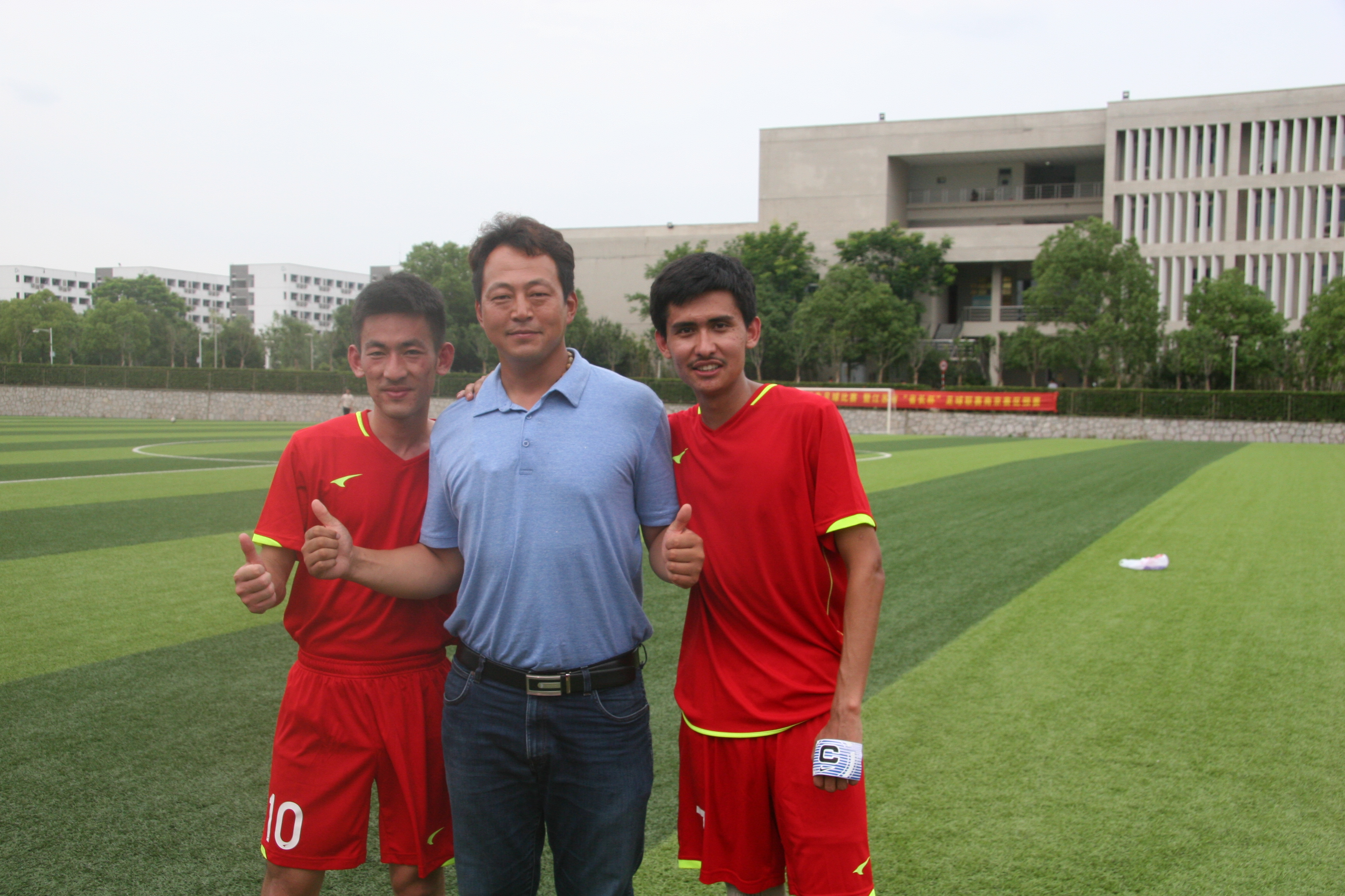 人生因梦想而伟大,大学有足球才精彩!尽管公司男足队的队员只是一群普通生,公司对普通生运动员也没有特别优惠的政策,但大家依然因为对足球的热爱选择加入了校队,也感谢公司能够给男足的队员们这样一个平台去展示自我。37度的高温,两天进行两场高强度的比赛、新老交替磨合的不足、多名队员受伤的困扰、期末考试等,但这些困难丝毫没有减弱队员们的斗志,反而激励着他们需要越战越勇,一个球队在什么困难都经历过后,所表现出来的精神才是最可怕的!王世峰拼到腿抽筋,叶尔兰头部被撞开,鲜血直流,简单包扎后仍坚持打完比赛。每一位足球队的队员都在用行动诠释着足球的精彩之处和南工的拼搏精神,虽然半决赛输在了点球大战实为可惜,但是公司拥有这么一支团结强大的足球队,可以想象,在不久的将来,甚至就可能是下半年的省长杯,这支队伍可以给公司带来更高的荣誉!