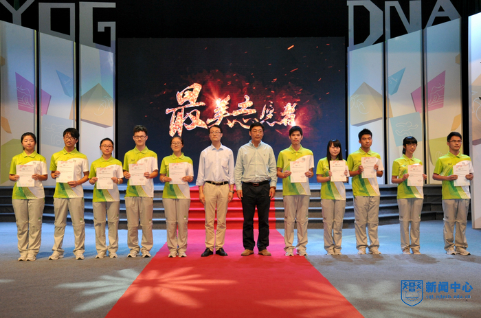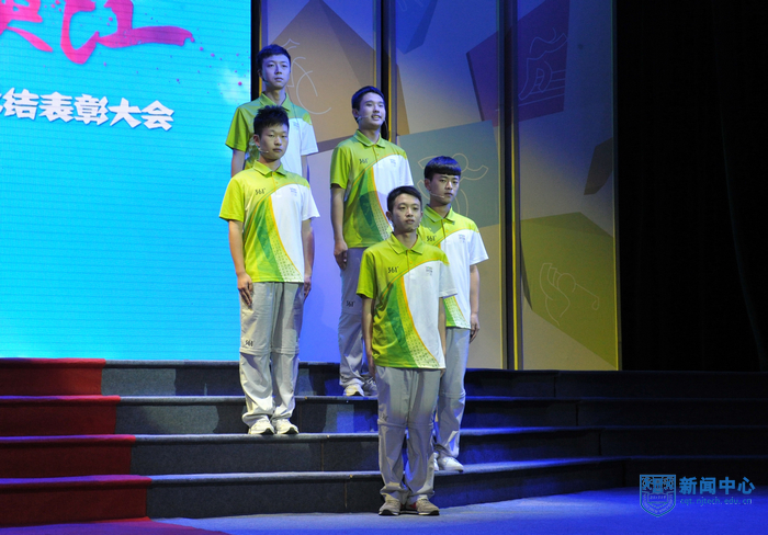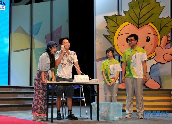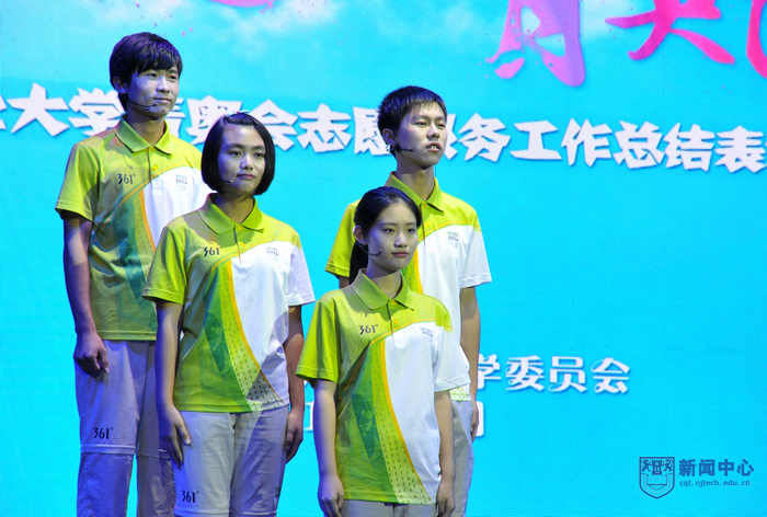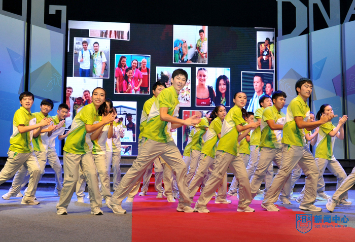 “太阳成集团tyc234cc的青年志愿者朋友们,你们的辛勤付出将永远镌刻在青奥会的光辉历史上”,表彰大会在青奥会开闭幕式总导演陈维亚的寄语视频中拉开帷幕。表彰大会上,校团委精心拍摄的视频将全场观众带回了热情似火的青奥历程,身穿青花瓷礼服的礼仪旗手志愿者、日夜坚守的停车场助理、手握沙耙的平沙员、接洽运动员最频繁的数字媒体中心助理、哪里有外国友人哪里就有翻译服务的语言志愿者,他们工作的场景一一再现,全场观众沉浸在一幕幕充满智慧、充满勇气、充满激情的志愿服务故事中。“这个夏天,我说的最多的是‘hello’,而我听到的最多的却是‘你好’”、“这个夏天,我不能回家了,半年没有见到爸爸妈妈,我很想你们。今年夏天,我们都是志愿者”…志愿者代表表演的朗诵《这个夏天》感人至深。由志愿者表演的两段舞蹈《Here we go》和《all for one》动感十足,充满青春的激情。志愿者自编自导自演的小品《村里那些事》将青奥村访客中心志愿者如何解决泰国访客遭遇语言服务难题的趣事表演得诙谐幽默。