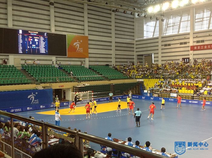 8月20日下午,公司江浦校区体育馆内,中国对哈萨克斯坦的女子手球赛正激烈的进行着。
