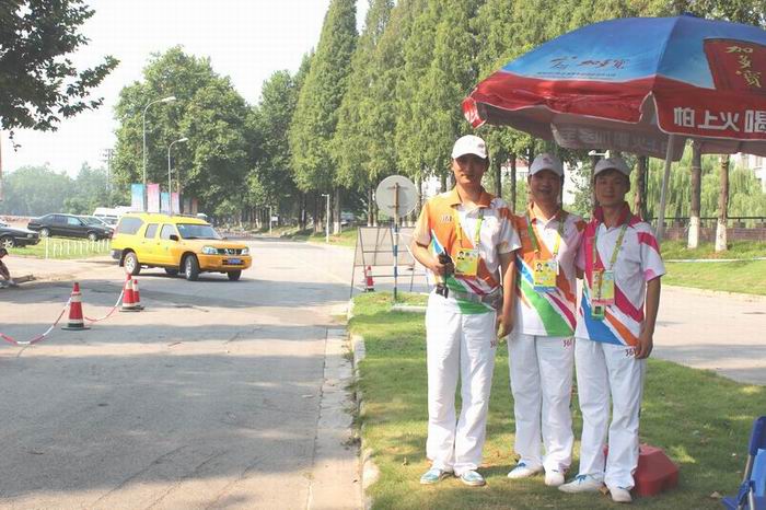 为了保证场馆周围的道路畅通有序,郑金根据场馆外道路特点,结合工作经验,在道路中央摆放上锥筒,很好的避免了道路两边的违停,在不具备摆放锥筒的地方,他便不间断的徒步巡逻,及时取缔违停车辆,并引导观众车辆有序停放场外停车场。在连续高温的天气下,郑金还出现了中暑的症状,连续呕吐,吃不下饭,但他没有耽误片刻工作,吃了几颗解暑药丸便继续行走在巡逻的路线上。