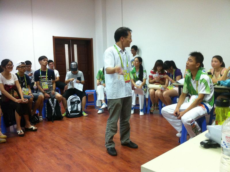 由体育部党总支书记、本届手球比赛观众服务经理陈建华老师主讲,陈老师首先代表南工大手球比赛团队向全体观众服务志愿者的到来表示了热忱的欢迎,感谢大家加入到比赛的服务工作之中,在就有关工作进行了详细说明后,重点地向大家阐述了经历本次活动应该多问几个希望达到的目的,不能简单地停留在服务观众,不怕吃苦,努力工作,履行好职责等浅层次上,应该通过这样的经历后,除了更多地了解国际性重大比赛事的组织框架、运行模式、组织精细程度、团队协作等外,还应该对体育的功能和作用有个全新的认识,并从行动上积极地参与体育、热爱体育、重视运动上,力求在大学里更加自觉地落实好“每天锻炼一小时,健康工作五十年,幸福生活一辈子”号召,用志愿者示范行动带动全民健身,为活跃公司体育文化多做贡献。讲授中不时地用自己的亲身经历,谈南京举行亚青会和青奥会的现实意义。