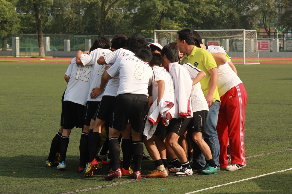 中场休息时,成老师继续让队员采取上半场的既定战术,稳固后防的基础上抓防反。下半时,双方一度形成僵持,均未能创造特别好的机会。局势在开场不久出现了变化,东南大学一个前场任意球,由于对方前场几名高大队员的干扰,我们守门员出现了脱手,先丢一球。在困难的情况下,我们队员都没有放弃,终于在最后阶段,通过一个任意球,沙锐前点后蹭,姚嵩后点捡漏扳回了比分。最后阶段,校队发动了最后的猛攻,但未能得分,双方进入点球决战。