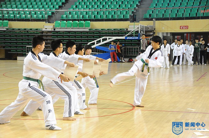 跆拳道作为东方传统武术项目,具有较高防身自卫与强壮体魄的实用价值,不仅可增强体质,而且培养人的坚忍不拔的意志品质。比赛伊始,校舞龙舞狮队前来助阵,为观众带来了精彩表演。金光鳞鳞的巨龙在空中腾飞翻滚,四只喜庆的狮子伴着鼓点跳跃摆动,观众不断地拍手叫好,现场气氛一下子高涨了起来。