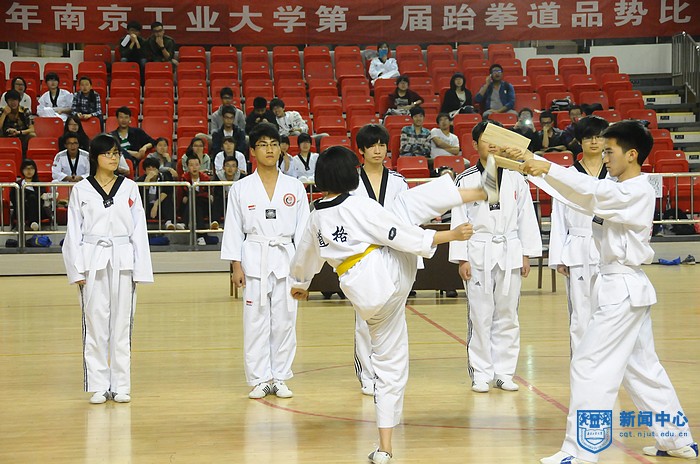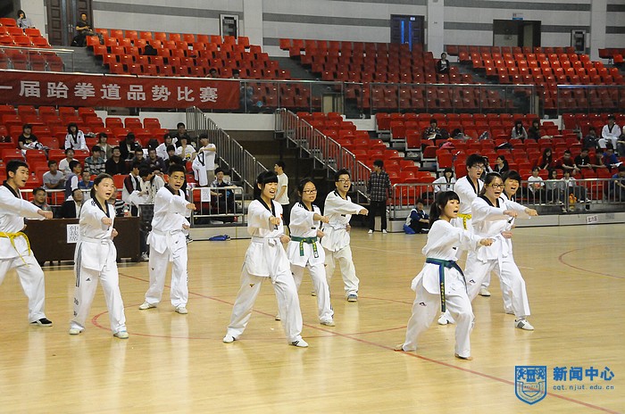 5月9日晚,由校体育部主办,校员工跆拳道俱乐部承办的校第一届跆拳道品势比赛,在江浦校区体育馆隆重举行。校体育部党总支书记陈建华、副主任孙欣荣,执行主任赵飞出席了比赛。体育部章璐璐老师担任总裁判长,杜寿高、王鸣骏老师担任了副总裁判长,颜耀春、张海涛、陈晓霞、严燕、薛敏老师担任裁判员。张文颂老师负责队伍的检录工作。整个比赛由体育部李佳静老师策划和组织。来自经管公司、土木公司、材料公司等17个公司代表队参加了比赛。比赛共分为:团体比赛、特技比赛、个人比赛、其他品势比赛和集体比赛。
