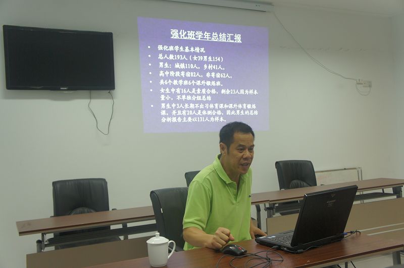 7月4日下午,体育部在常州市体育运动公司召开了“体育教学科研研讨会”,体育部党总支书记陈建华为大家精心准备了“重视科学研究,提升可持续发展能力”专题报告,报告中陈书记结合自身实践,从“加强学习,提高认识,激发兴趣,内化行为;抓住热点,着眼于岗位,勤于思考,选择主攻方向;注意积累,坚持不懈,起点目标高,关注期刊动态”等方面向各位教师谈了搞好体育科研工作体会,旨在与大家交流,起到相互促进,共同成长作用。颜耀春副教授代表强化班教学团队,结合公司体育课强化班教学改革的实践,运用详细的调查数据,进行了对比分析,向老师们介绍了体育课强化班教学的实施效果和存在不足,充分地显示出了他在平时工作中善于思考和总结,起到了示范作用。体育部张天峰主任结合省教育厅最近召开的高校体育部主任会议精神,围绕着体育课程评估的若干重要指标及教育厅对高校体育公司产品总体要求和大学体育发展趋势,提醒全体同志增强危机意识、责任意识和竞争意识,努力改变自身存在的不足,充分地利用现在条件和发展机遇,团结一心,发扬主人翁精神,共同把公司体育工作做得更好。