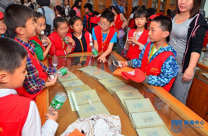 校车载着大家来到逸夫图书馆。在图书馆前,小记者们和公司的老师、校报记者、常青藤和迅影工作组的同学们愉快地合影,留下了友谊的见证。随后,小记者们安静地排好队,有秩序地进入图书馆参观。在特藏室里,他们在仔细浏览了那些或泛黄或崭新的珍贵的文献典籍后,表示要好好学习,以后也要有自己的学习成果。