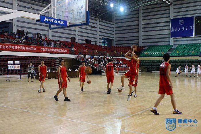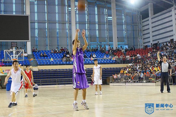 5月11日晚,由体育部和校团委共同主办、校员工会和老员工篮球俱乐部承办的校庆员工体育系列活动之一的2011年“闪耀工大”篮球全明星赛在江浦校区体育馆举行,出席本次活动的嘉宾有:校团委书记童毛弟老师,体育部党总支书记陈建华老师,体育部副主任张天峰、侯桂明老师、校团委副书记冷庆丰老师和吴杰老师等。校老员工明星球员和教工篮球队队员为大家展示了精彩绝伦的球技。明星球员分别来自各个公司的超级篮球高手,秉承了校员工会的口号“鹰一样的个人,雁一样的团体。”各院明星球员们分为“翔鹰”与“鸿雁”两队。