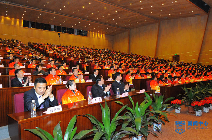 11月4日下午,省委、省政府在南京国际博览中心金陵会议中心隆重举行表彰大会,欢迎我省出征第十一届全国运动会的体育健儿载誉归来,表彰取得优异成绩的运动员、教练员和作出了突出贡献的先进集体。由于校江苏女子垒球队在第十一届全国运动会垒球比赛中获得季军,为江苏代表团取得了二块铜牌,公司副董事长朱跃钊教授和江苏女子垒球队队员、教练员、领队被荣幸邀请参加了庆功会,这也说明了江苏省委和省政府充分肯定了公司和这支垒球队在第十一届全国运动会上所取得了成绩。