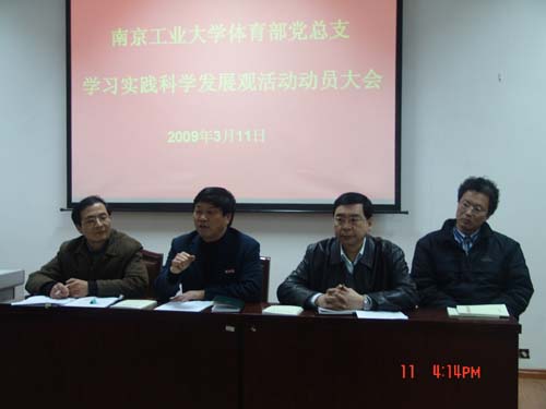 接着,体育部主任王浩同志讲话中,希望全体党员和各支部这次学习实践活动中,紧密结合实际工作开展,针对体育部各项工作开展方面还需要解决的机制和体制上创新、政策规定上的不断完善,要通过与兄弟高校同行们的对比分析的基础上,查找我们在体育团队队伍、学位结构和层次、科学研究、群体组织活动等方面不足。王主任还结合今年体育部重点工作,号召全体党员在校运动会的组织、员工课外体育活动的开展、体育共公课教学、迎接省教育厅对体育课程评估等工作中充分发挥这次学习实践活动的积极的影响作用。总之,围绕公司提出了推动科学发展,建设有特色、高水平的大学的宏伟目标,努力在人才培养、员工综合素质的提高上大胆的实践和创新。