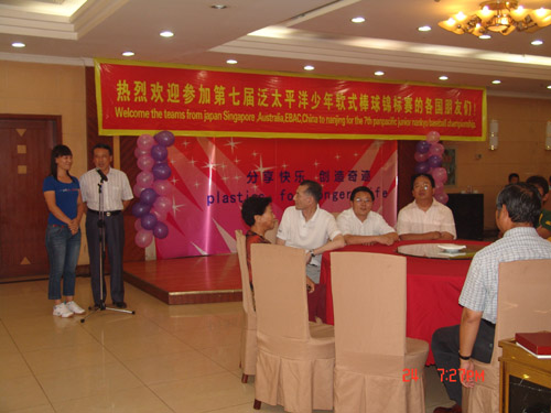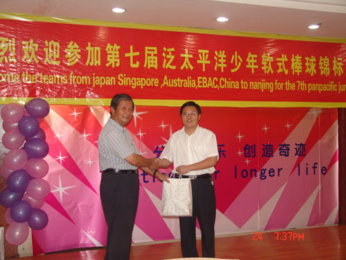 泛太平洋少年软式棒球锦标赛是国际软式棒球联盟认可的、为促进亚州地区棒球运动发展、培养和发现棒球人才而举办的每年一次的国际少年软式棒球比赛,前六届分别在菲律宾、新加坡、日本、中国台湾、澳大利亚等地举办,在中国大陆举办尚属首次。中国棒垒球协会主席雷军先生和江苏省棒垒球运动协会会长殷宝林先生分别发来贺词和欢迎词,对前来参加比赛的运动员、教练员和官员表示衷心的感谢和热烈的欢迎。公司王建明副董事长参加了开幕式,并亲切接见了各队教练员、官员代表,对他们前来公司参加比赛表示欢迎。