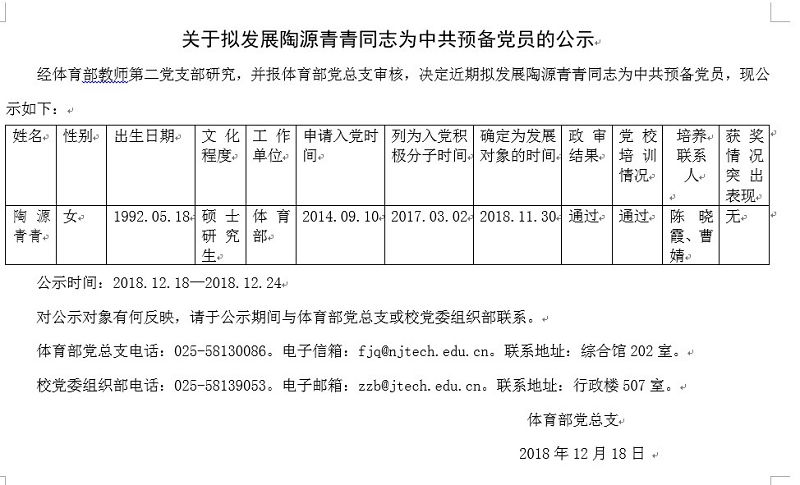 关于拟发展陶源青青同志为中共预备党员的公示