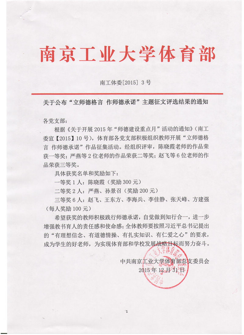 关于公布“立师德格言 作师德承诺”主题征文评选结果的通知