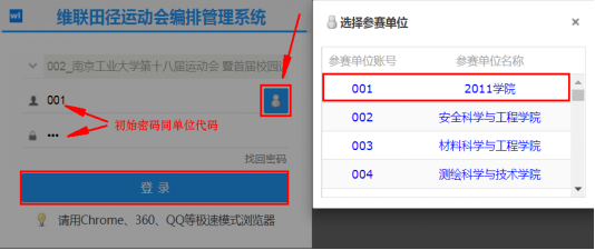 用户名:点击用户右侧按钮选择单位,教工选单位名后有“教工”字样