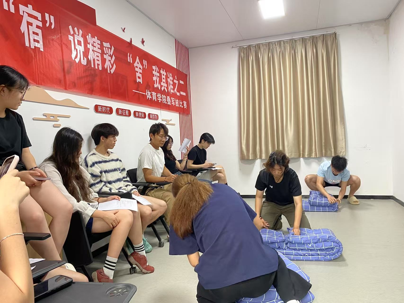 竞赛环节,运动2402班班长华翎亦详细介绍了比赛规则和评分标准。来自各宿舍的25名员工代表分为若干小组,在规定时间内展开了紧张而有序的军被折叠比拼。参赛选手们全神贯注,动作标准,展现了扎实的内务技能。经过激烈角逐,最终评选出一等奖1名、二等奖1名、三等奖1名,鼓励奖2名。